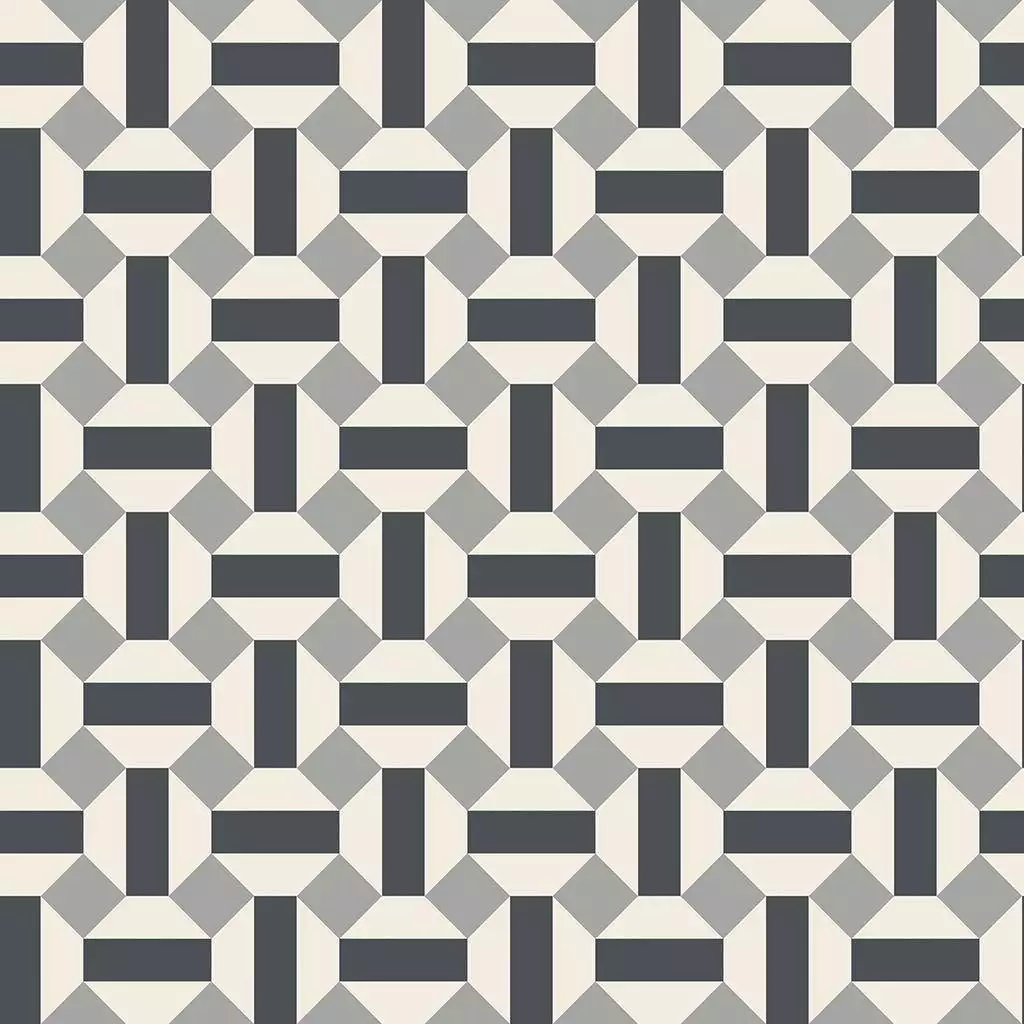 Die Tapete Alicatado zeigt ein geometrisches Mosaik aus farbigen glasierten Kacheln. Es ist eine Interpretation der berühmten Azulejos von Sevilla und wirk top modern.