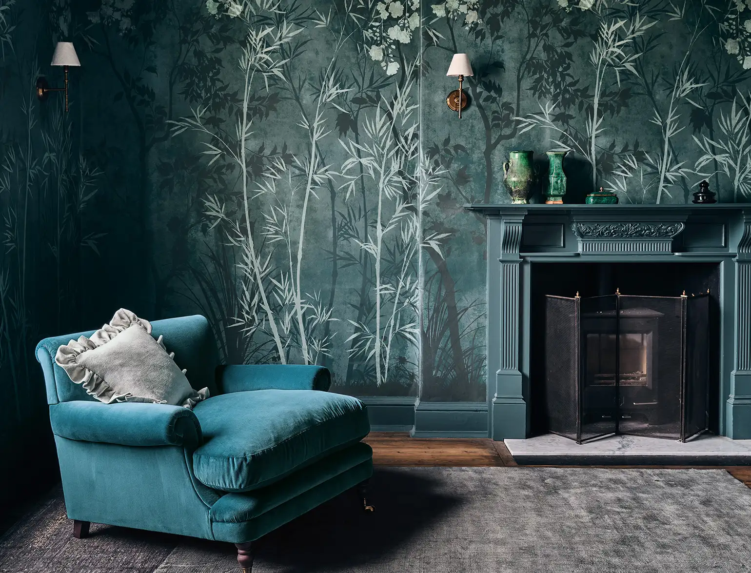 Die Kollektionnen von Romo verzaubern mit außergewöhnlicher Eleganz und Esxklusivität. Die Tapete Sayuri ist eine Chinoiserie Tapete in schimmernder Optik. Die feine Silhouette eines asiatischen Waldes strahlt eine einzigartige Ästhetik aus, die jeden Raum in eine fernöstliche Szenerie verwandelt. Ausgewählte grün und Silbertöne unterstreichen die exclusive Ausstrahlung dieser Tapeten in asiatischem Stil.