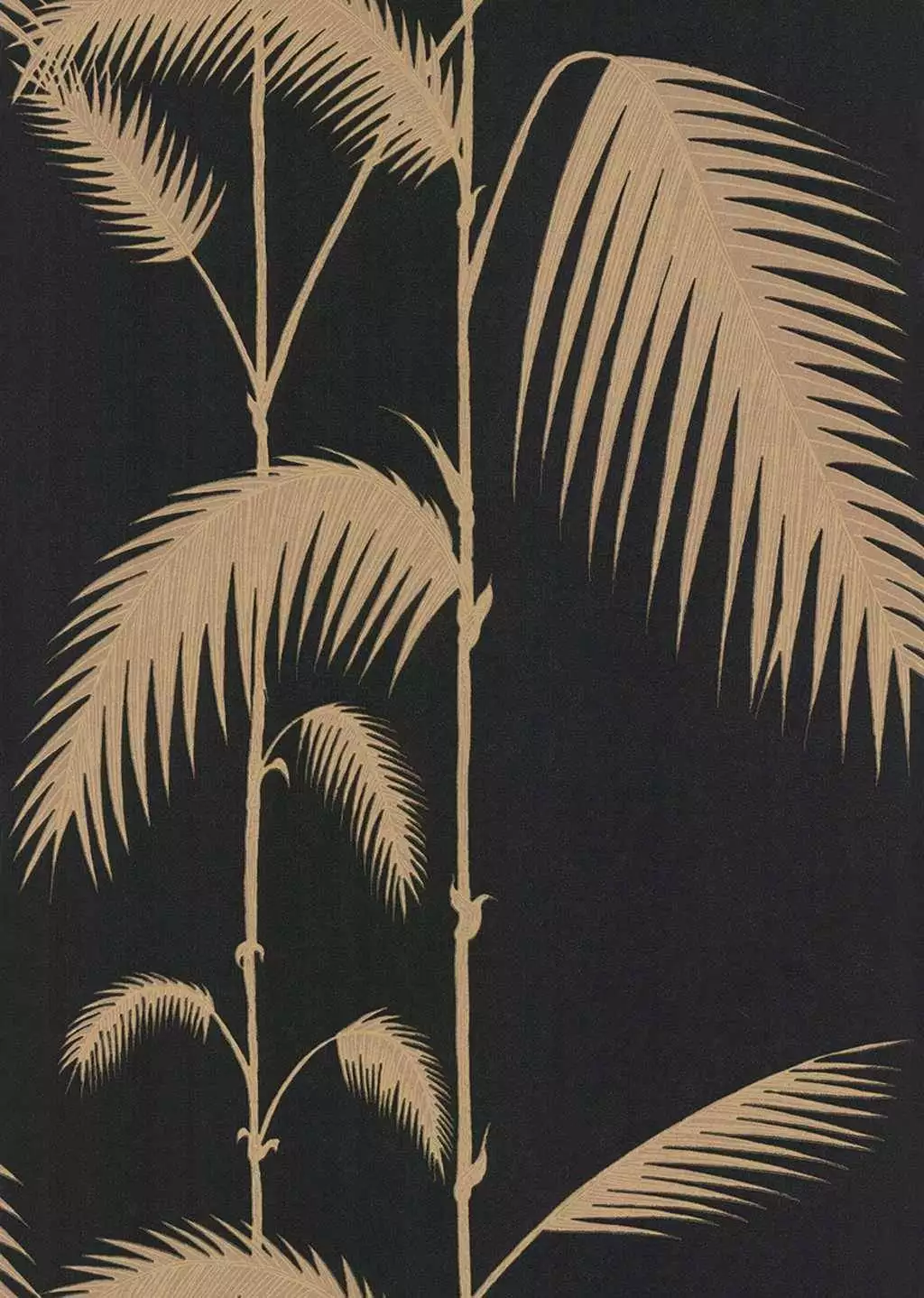 Elegante Palmwedel schaffen auf dieser Tapete eine salonhafte Atmosphäre.