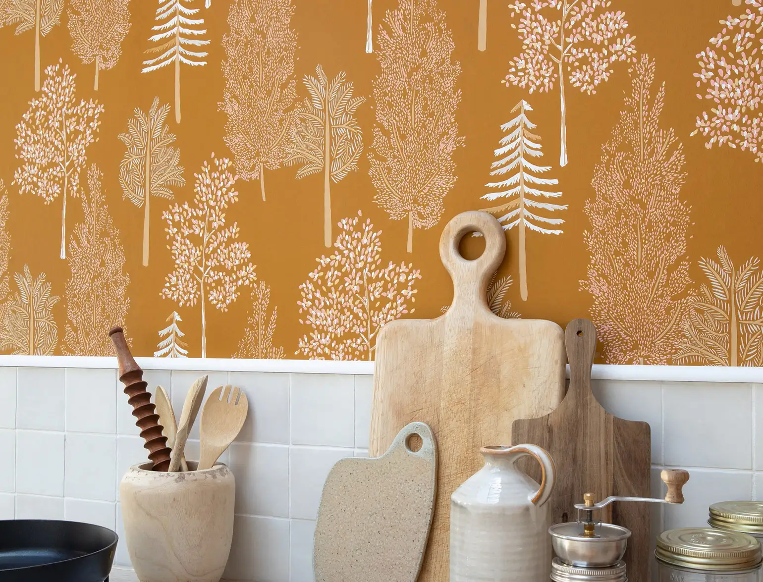 Auch natürliche Materialien und Farben spielen eine große Rolle. Tapeten in Holzoptik oder mit Erdtönen bringen Wärme und Gemütlichkeit in die Küche und schaffen ein harmonisches Zusammenspiel zwischen Natur und modernem Design.