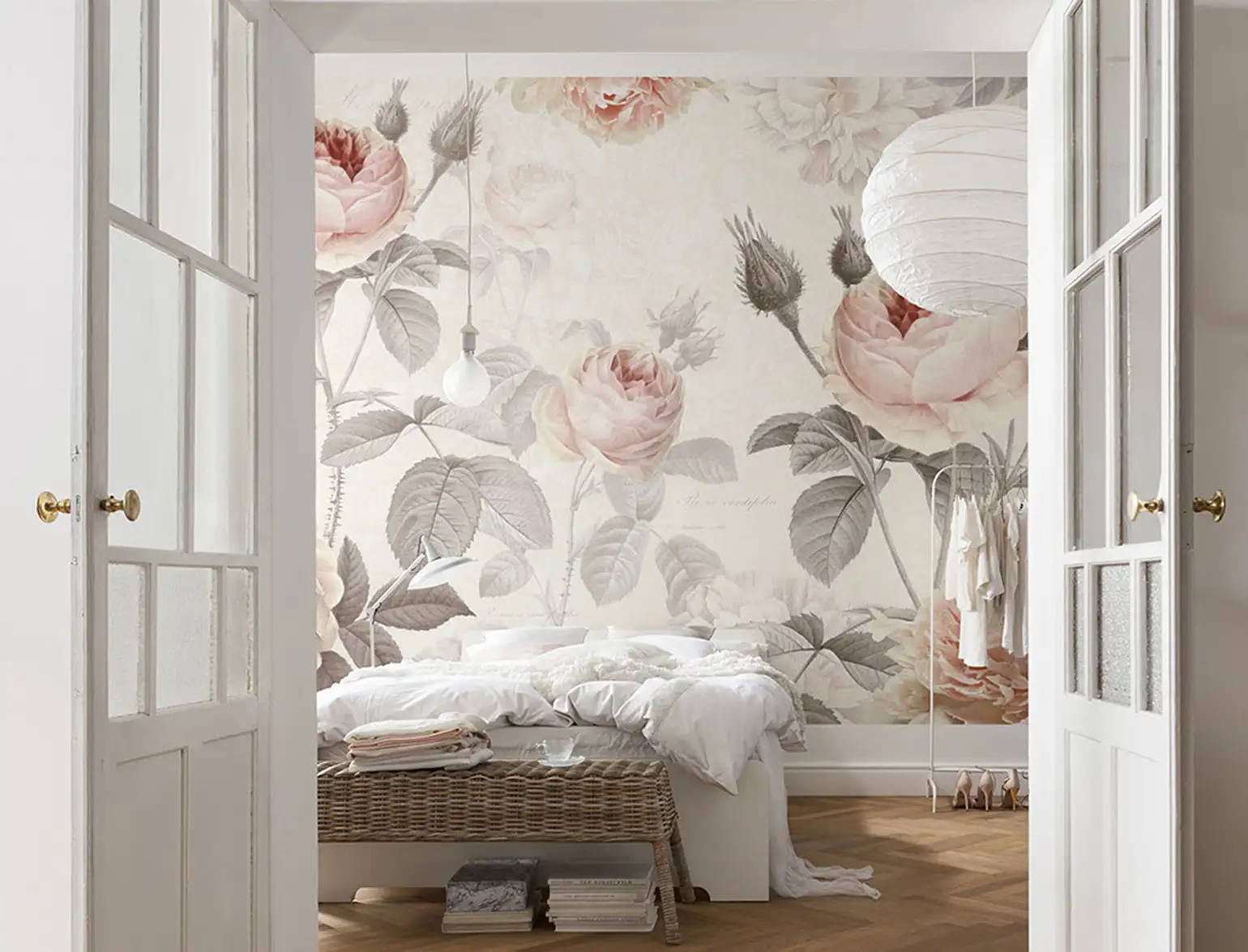 Florale Tapeten im Schlafzimmer schaffen eine behagliche, romantische Atmosphäre und verleihen dem Raum eine natürliche, sanfte Note. Ob große, duftige Rosenblüten oder zarte Streublümchen – Blumentapeten bieten eine Vielzahl an Gestaltungsmöglichkeiten für einen sinnlichen Rückzugsort.