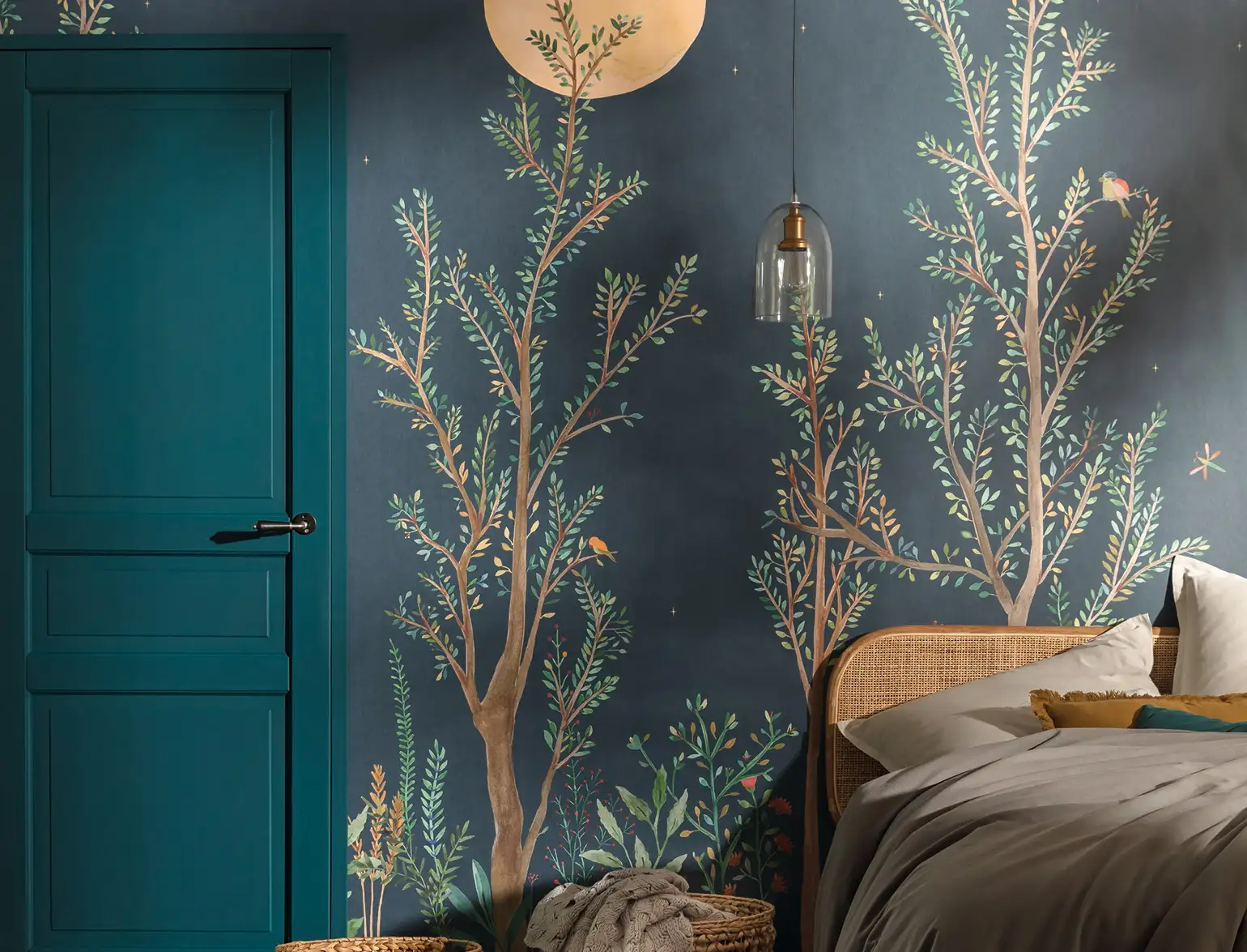 Mit einer Fototapete lassen sich im Schlafzimmer besondere Akzente setzen, die den Raum in eine individuelle Ruheoase verwandeln. Naturlandschaften wie dichte Wälder, Wasserfälle oder weite Berglandschaften bringen eine beruhigende Tiefe ins Zimmer und vermitteln ein Gefühl von Freiheit und Weite.