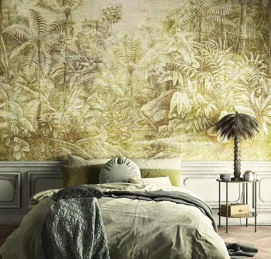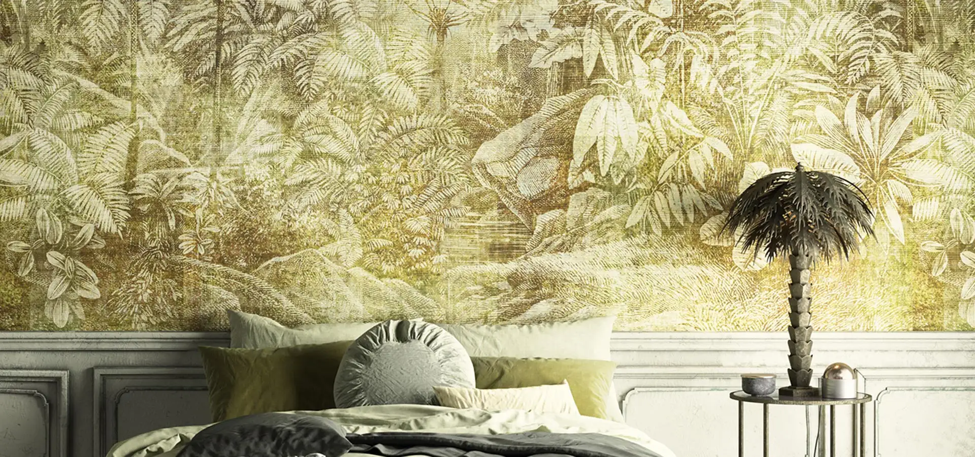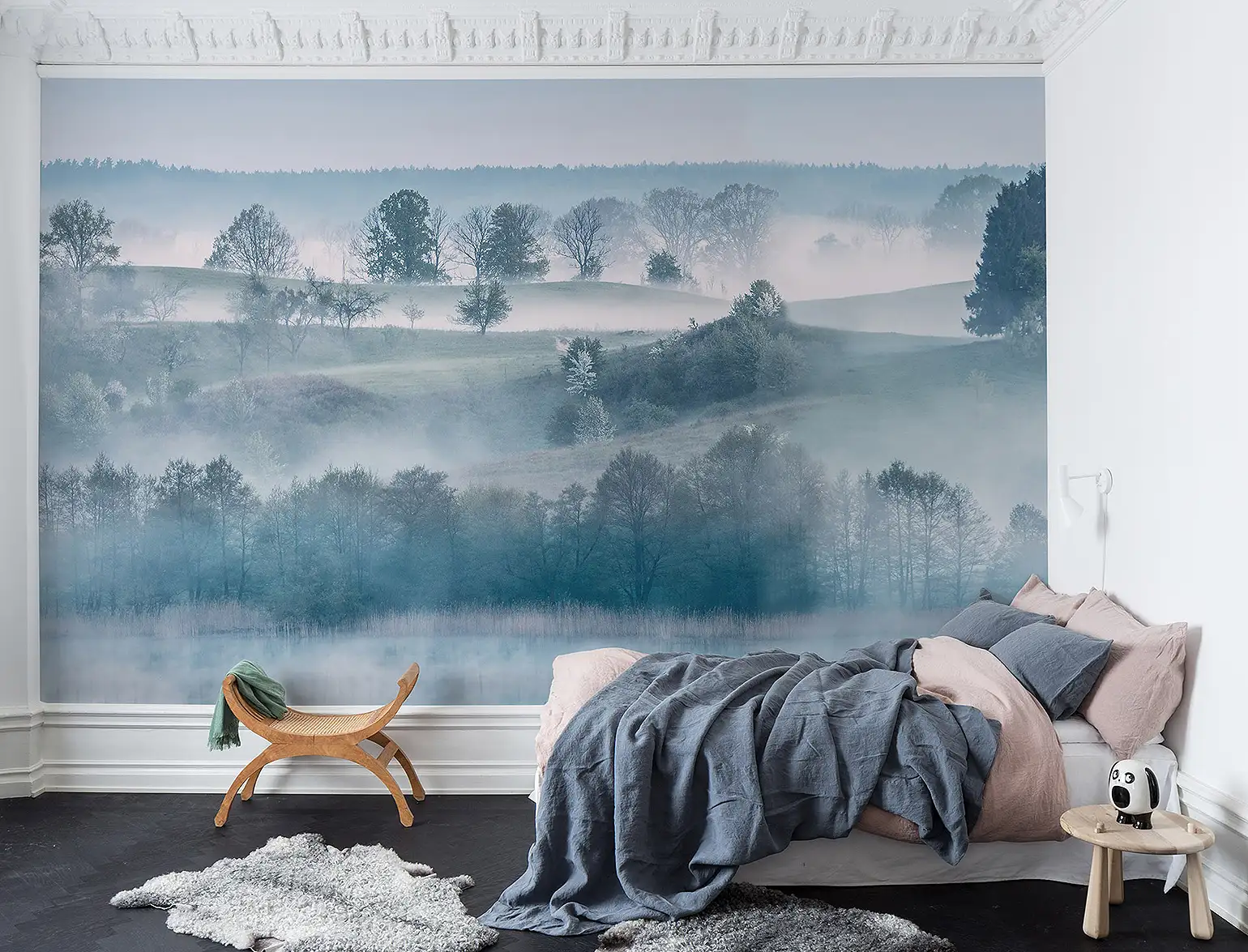 Hochwertige Fototapeten im Schlafzimmer können das Raumgefühl komplett verändern: Während helle, weite Landschaften das Schlafzimmer größer und heller wirken lassen, erzeugen waldige, grüne Motive eine behagliche Rückzugstimmung.