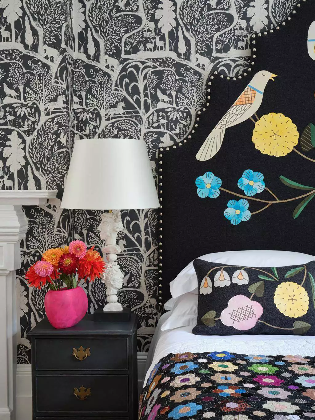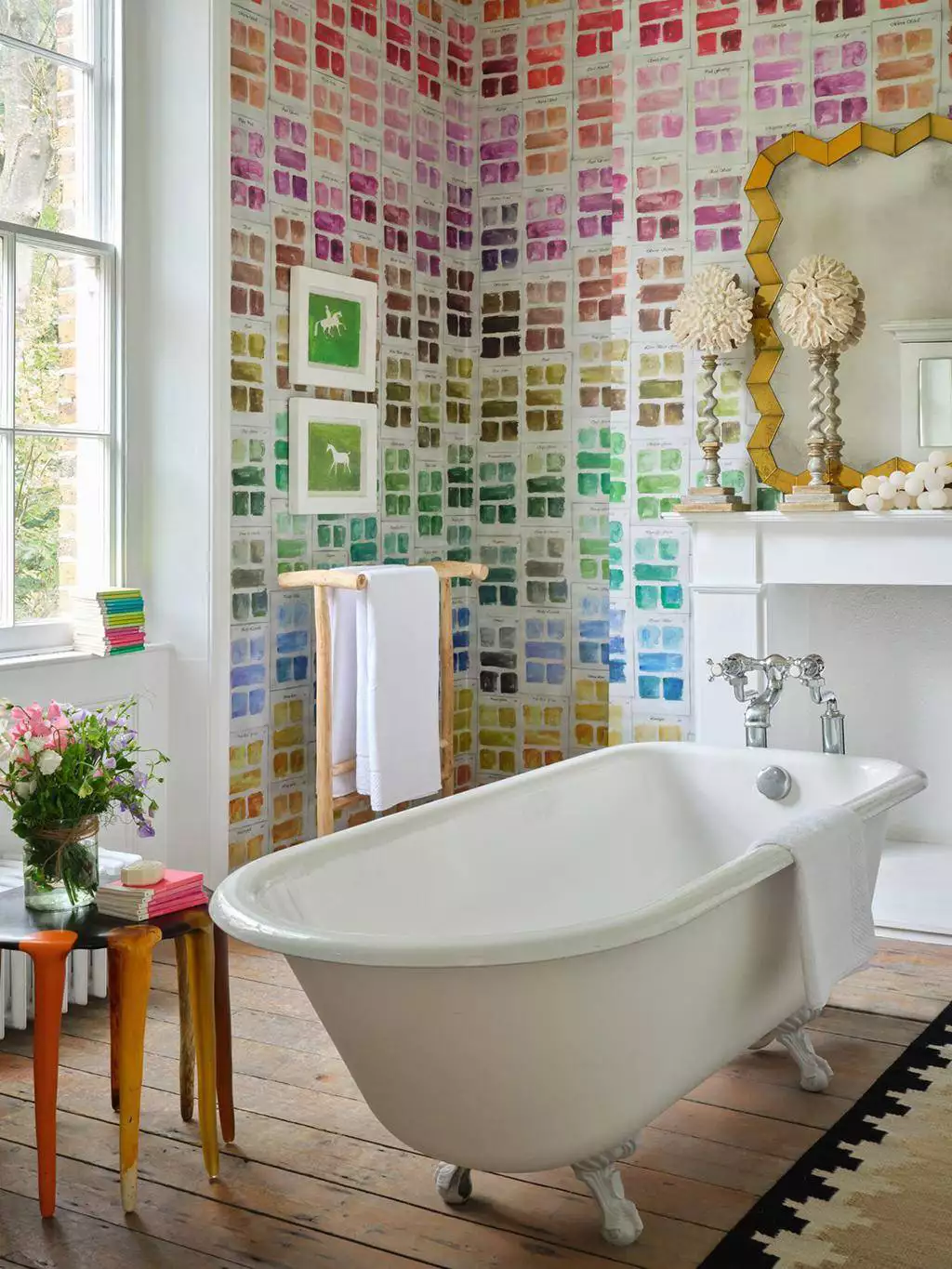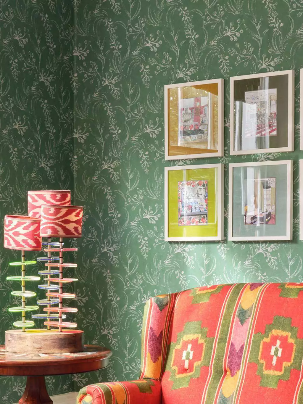 Im Designstudio von MindTheGap, wo jedes Kunstwerk von Hand gefertigt wird, sind sowohl neue Entwürfe als auch Weiterentwicklungen bestehender Designs entstanden. Minnie Kemp hat Muster aus dem umfangreichen Archiv aufgegriffen und sie durch Neufärbung und Skalierung transformiert – darunter zarte Blumenmuster, die von Blockdrucken inspiriert sind, kühne grafische Muster, opulente Ikats, malerische Wandbilder oder extravagante Blütenmotive. Auch die Kulttapete „The Enchanted Woodland“ hat sie in neue Farben getaucht.