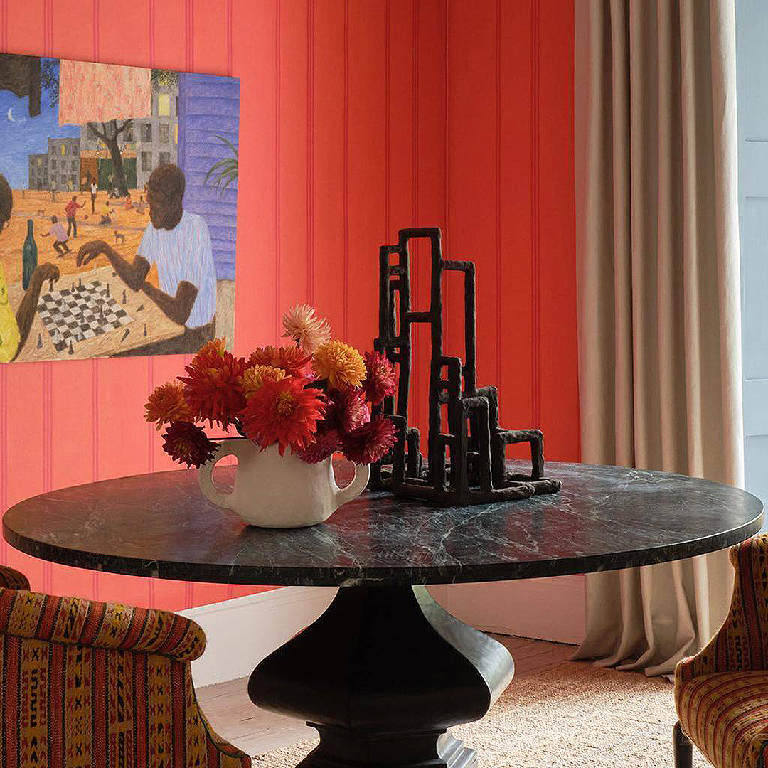 Die neu designte Tapete „Wallflower“ ist von einem Muster inspiriert, das Minnie Kemp an den Küchenwänden des „Apafi Manor“ in Mălâncrav entdeckt hat. Das von grünen Hügeln umgebene Gut wurde 1949 von den Kommunisten beschlagnahmt, als Tierheim genutzt und dem Verfall überlassen, bis eine Denkmalschutzorganisation das Anwesen restaurierte und die Küchenwände mit einer von Hand gerollten Tapete versah. Das mit einem handgeschnitzten Block gedruckte Design der „Wallflower“ zeigt Blätter und Knospen auf malerischem Grund. In der Positivvariante ist das Muster auf einen neutralen Grund gedruckt, in der Negativvariante aus einer kräftigen Farbe geätzt worden. Die Tapete ist in den Farben „Sunny“, „Clementine“, „Raspberry“, „Sky“, „Splash“ und „Moss erhältlich.