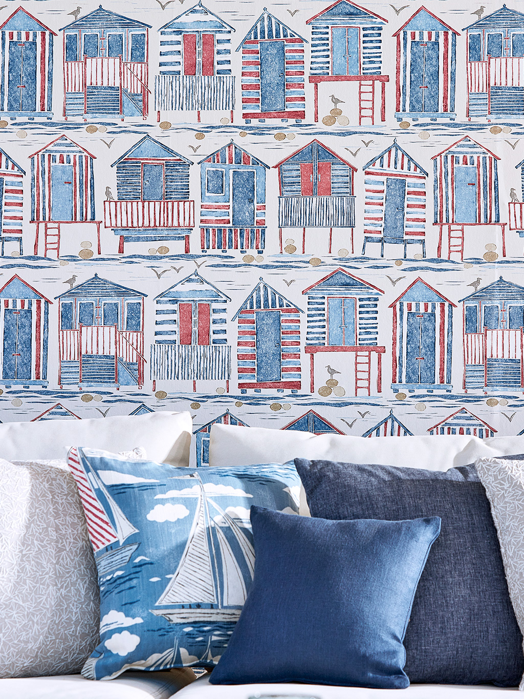 Häufig sind gar keine maritimen Motive erforderlich, um ein Gefühl von Meernähe und Weite zu wecken. Einfache Farbverläufe in Azur oder Jadegrün beschwören den Dunst über einer spiegelglatten Wasserfläche herauf. Impressionistisch flirrende Punkte oder helle Streifen inmitten auslaufender Farbfelder erinnern an Lichtreflexe auf dem Meer. Wer dem Charme von Vintage und Shabby Chic verfallen ist, wird sich der Anziehungskraft absplitternder Farbe auf alten Holzplanken nicht verwehren können. Das muss nicht immer echtes Holz sein. Durch eine Holzstücktapete in frischem Meergrün erhalten Räume im Handumdrehen das Flair einer gemütlichen Kajüte.