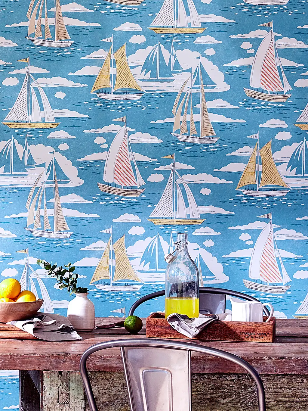 Wie auf den Werken der Marinemaler des Goldenen Zeitalters spielen Segelschiffe auf maritimen Tapeten eine wichtige Rolle. Wandgestaltung mit eindrucksvollen Dreimastern oder schnittigen Segelyachten wecken Fernweh und Abenteuerlust. Fischkutter, hinter denen Möwen jagen, verbreiten ein gemütliches Ferienhausambiente. Aber auch nautische Instrumente und Accessoires sind beliebte Motive: Der Kompass gibt die richtige Richtung vor, die Seekarte schützt vor Untiefen und der Anker sorgt für Stabilität. Nicht umsonst gilt das Schiff häufig als Allegorie für das Leben an sich. Nur wer es sicher durch alle Gefahren steuert, kann auch stürmischen Phasen trotzen.