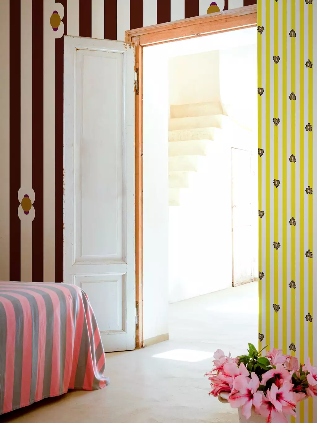 "text": "So auch die f\u00fcr Bien Fait kreierten Tapeten \u201eMa\u00efoun\u201c (provenzalisch: Heim, Haus) und \u201eLongo Ma\u00ef\u201c: Sie duften nach Provence und visualisieren Gro\u00dfz\u00fcgigkeit durch kr\u00e4ftige Farben und gewagte Streifenspiele. Sie sind in den Farben Granat, Zitrone und Zypresse erh\u00e4ltlich und k\u00f6nnen wunderbar kombiniert werden \u2013 oder auch nicht. Vous avez le choix!"