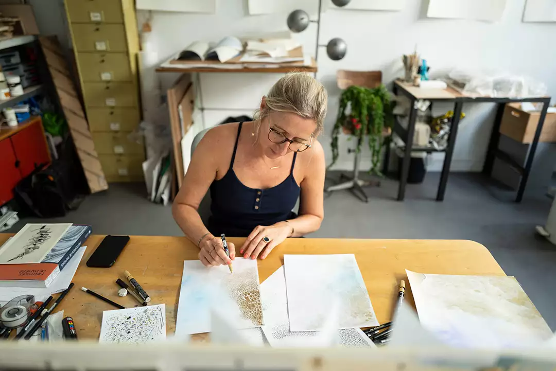Alix Waline, eine bildende Künstlerin und Designerin, erkundet die Bereiche Kunst, Grafik, Zeichnung, Wandmalerei, Tapeten und Objektdesign. Ihre kreative Neugier treibt sie stets dazu an, nach neuen Formen und Texturen zu suchen, wobei sie besonders von lebendigen und organischen Strukturen fasziniert ist. Alix verfügt über einen Abschluss in Bildender Kunst von der Beaux-Arts in Paris und hat Kunstgeschichte an der Sorbonne studiert. Ihr Herz schlägt für den multidisziplinären Ansatz, der es ihr ermöglicht, sämtliche Facetten ihres künstlerischen Talents zu entfalten.
