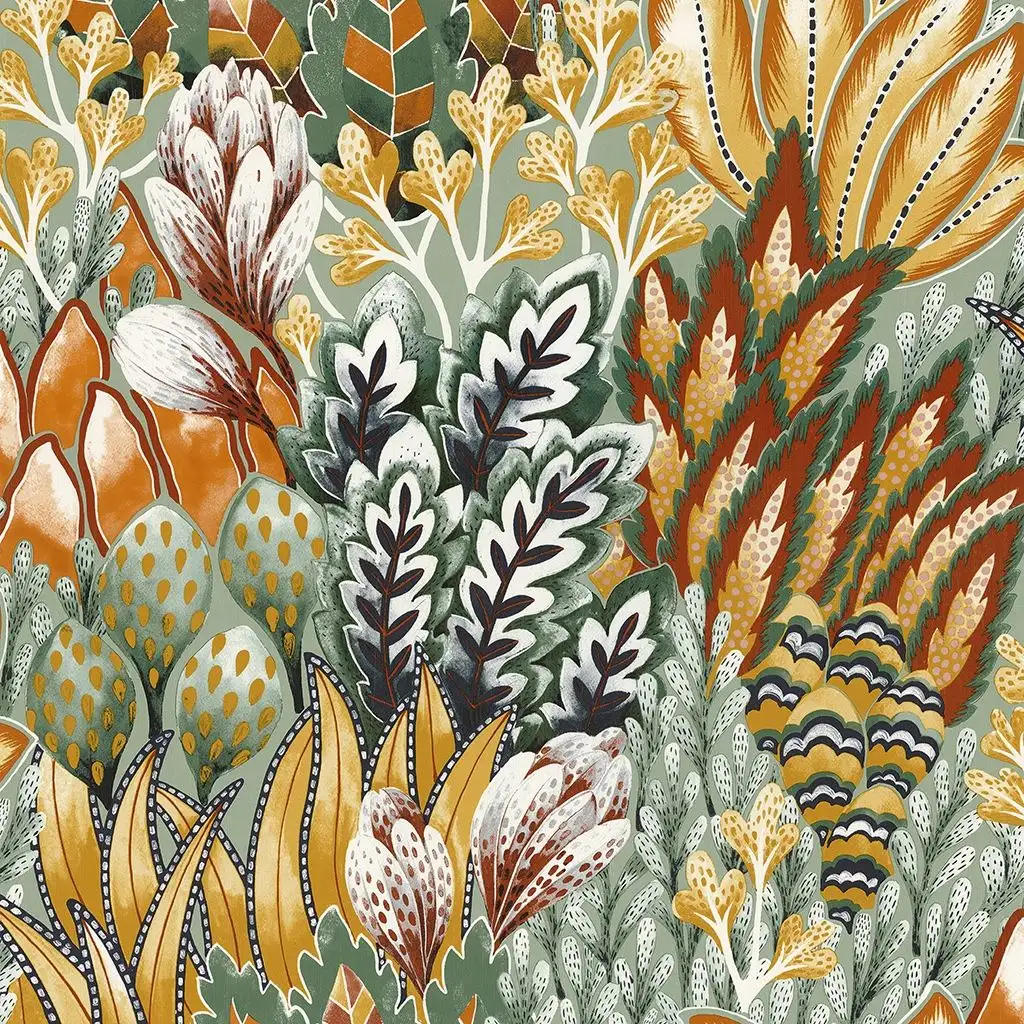 Die Avicennia Tapete ist ein wunderschönes Design, das sich mit seiner bunten und farbintensiven Ausstrahlung von der
