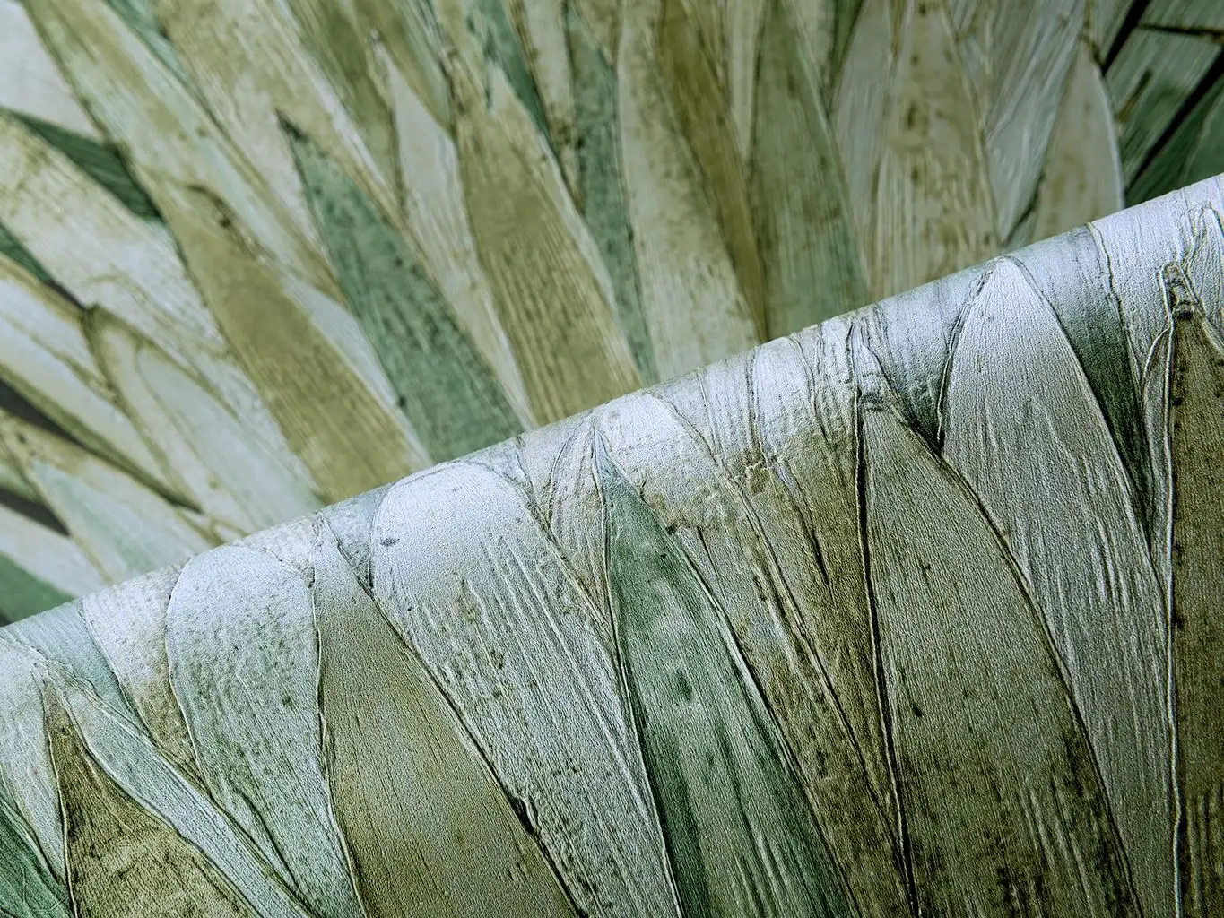 Die tropische Sonne genießen und unter einem Dach aus tropischen Blättern etwas kühlenden Schatten erhaschen. Träumen Sie auch von dieser besonderen Entspannung? Mit der exklusiven Tapete Albanico aus der Kollektion Selva von Arte werden Ihre Urlaubsträume in den eigenen vier Wänden wahr! Die matte Vinyltapete auf Papier ist mit großen Pandanblättern bedruckt. Durch das erhabene Relief bekommt das Blättermuster eine wunderbare Tiefe. Fällt das Sonnenlicht auf die Tapete Albanico ergeben sich faszinierende Schatten und herrliche Kontraste im Farbenspiel.