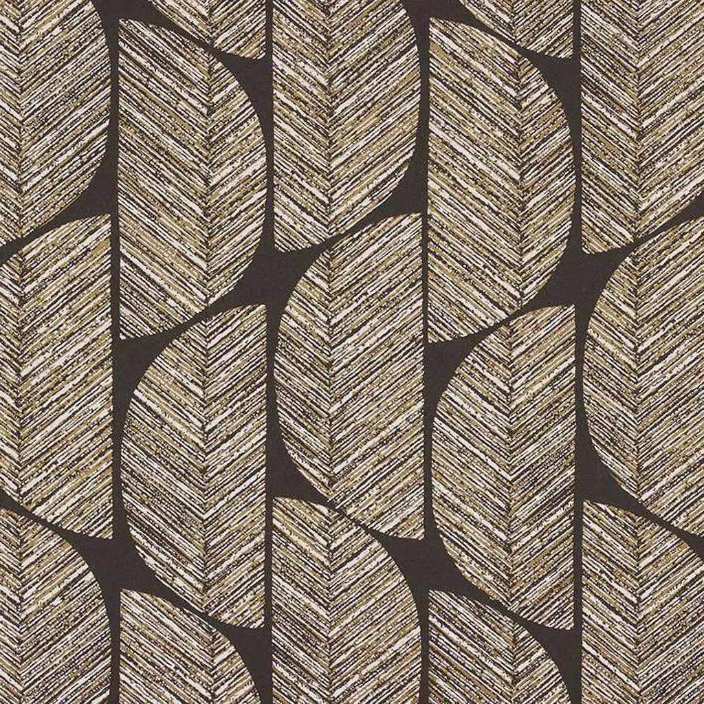 Die grafische Tapete Abelia zeig übergroße stilisierte Blätter. Aus der Anodnung der Blätter entsteht eine leichte Streifenwirkung.