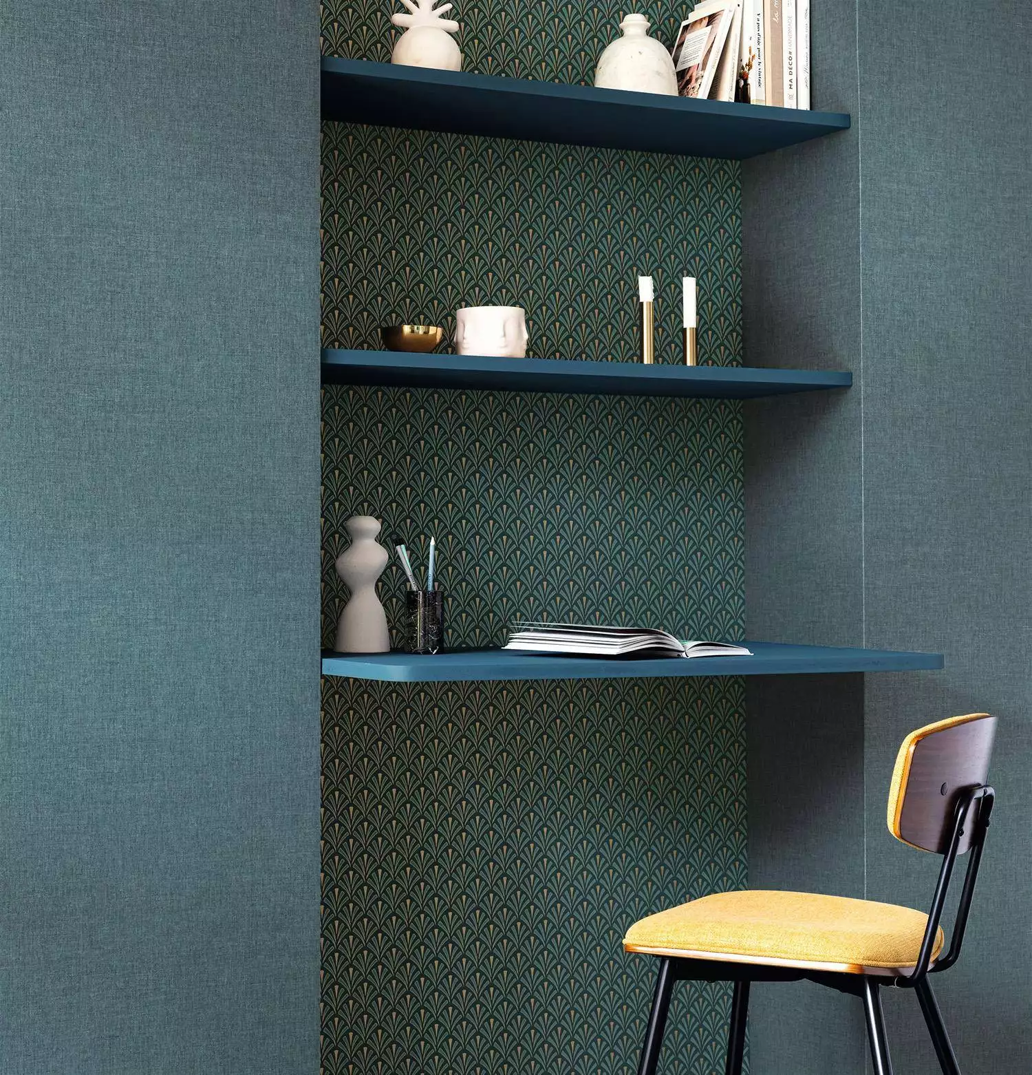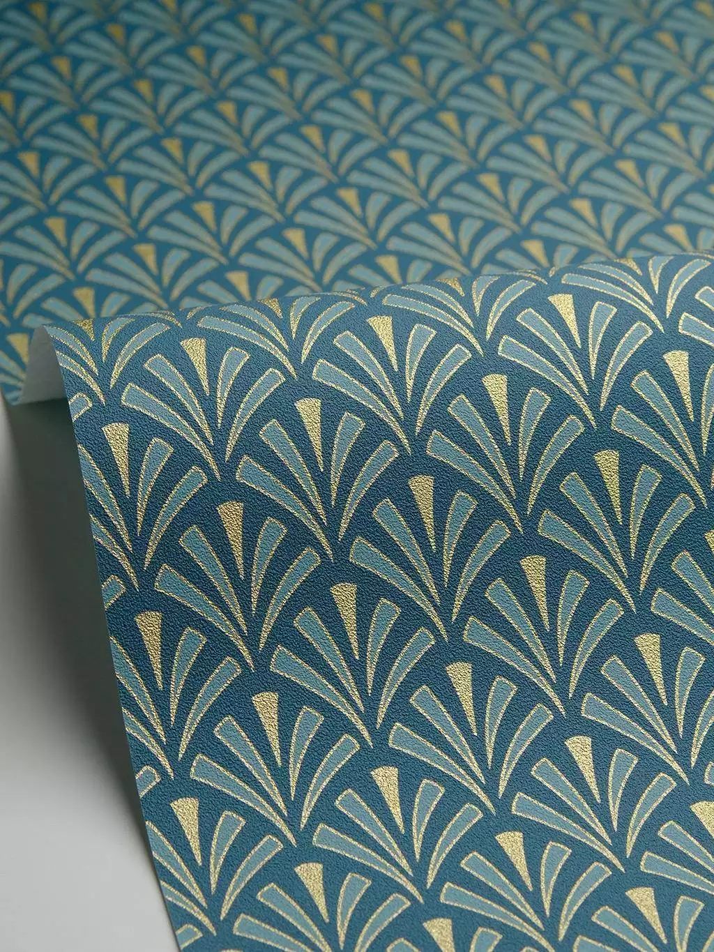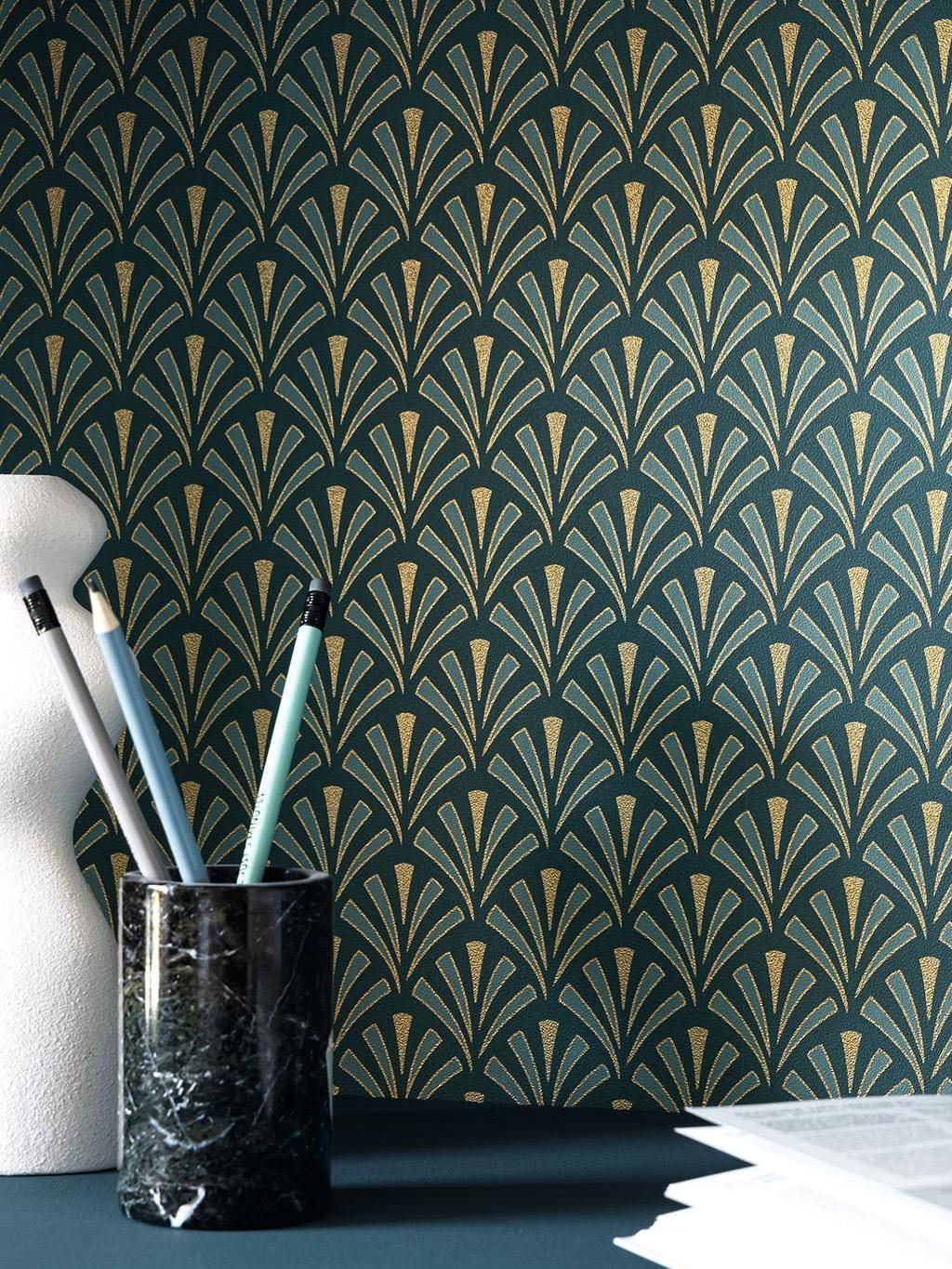 Die Tapete Abundance fängt das Licht ein und lässt es tanzen wie Abendlicht auf spiegelglatter See. Zarte Fächerformen entfalten sich in goldener Geometrie. Erfolgreich schlägt diese Hommage an den Zauber des Art Déco eine Brücke in die Moderne. Sanft schimmernd, elegant und voller Lebensfreude – eine Tapete, die den Raum mit müheloser Opulenz erfüllt.
