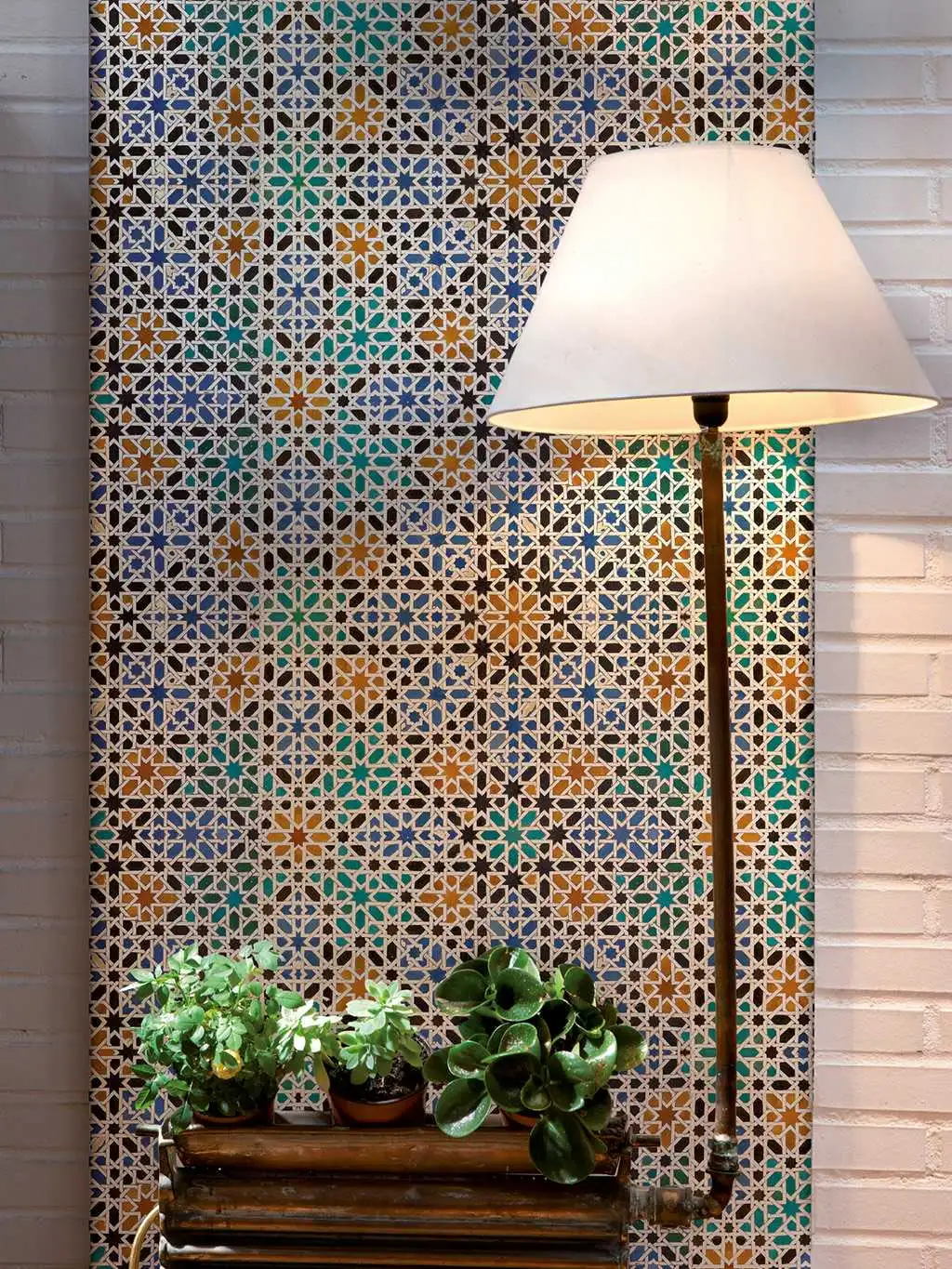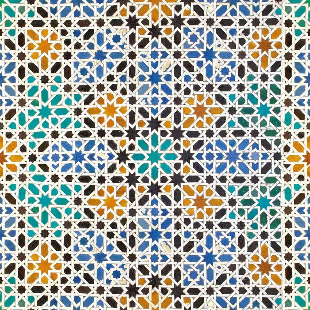 Die Tapete Alandalus von Coordonné ist ein geometrisches Design in Grüntönen aus der Kollektion Tiles.