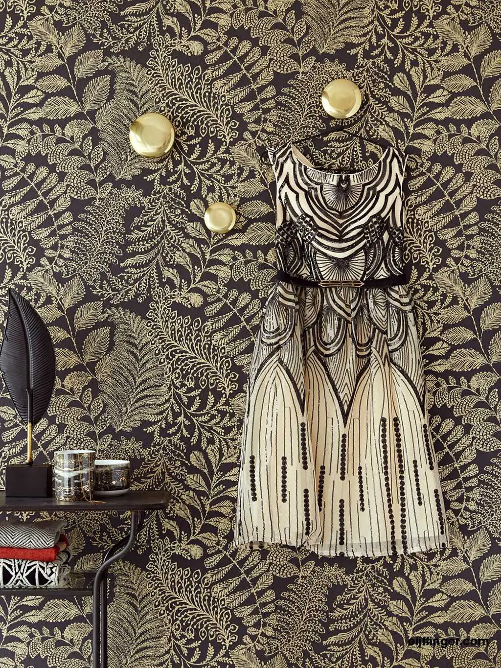 Florale Tapete in edelem Schwarz mit 20er Jahre Look!