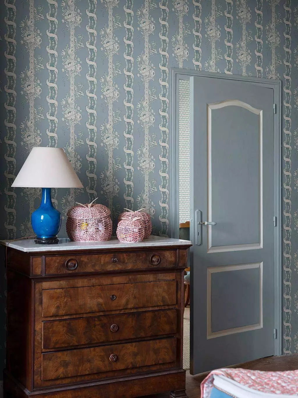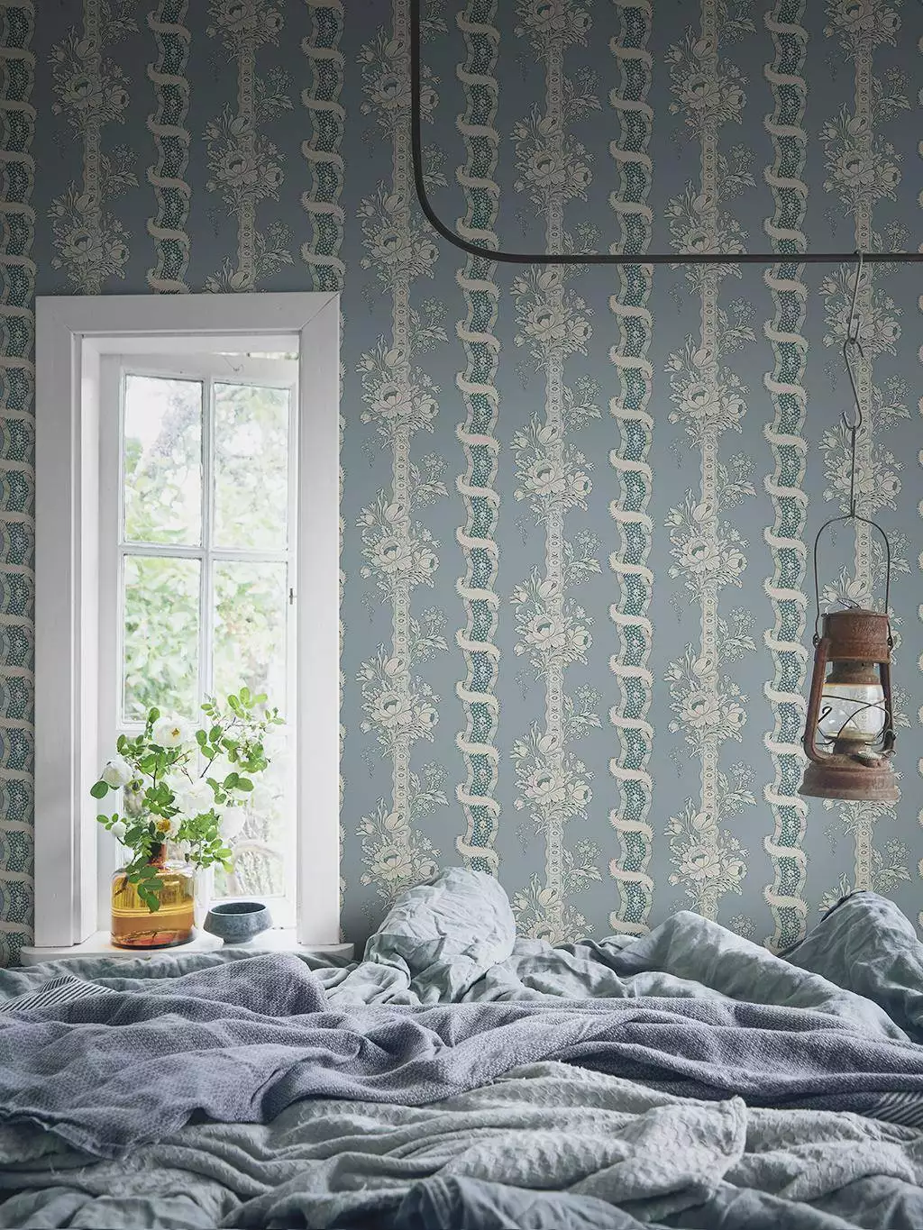 Bei der in sanftem Blau-Grau gehaltenenen Tapete Alexandra Misty Blue trifft ornamentales Design auf feine florale Elemente und vertikale Streifenakzente. Alexandra Misty Blue wirkt elegant, edel und dezent verspielt. Ideal, um Akzentwände stilvoll zu betonen oder ruhige Räume mit Charakter zu versehen. Materialien und Verarbeitung unterstreichen die hochwertige Qualität. Pflegt sich leicht und passt zu klassischen wie modernen Einrichtungskonzepten – ein Hingucker ohne Übertreibung.
