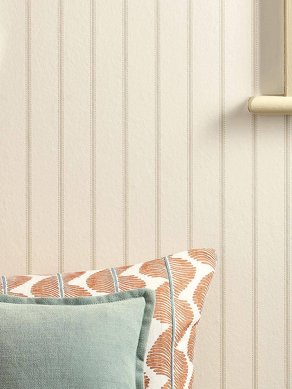 Bestechend schlicht und einfach schön, so lässt sich die Streifentapete Alma von Romo in der sanften Farbgebung Merino in wenige Worte fassen. Der elegante Streifen ist mit feinen Punkten verziert, die dem Klassiker ein feines Finish verleihen. Diese vielseitig einsetzbare Wandverkleidung greift die traditionelle Handwerkskunst auf und nutzt die traditionelle Methode des Oberflächendrucks, wodurch eine sanfte Reliefstruktur und ein kreidiges Finish entstehen.