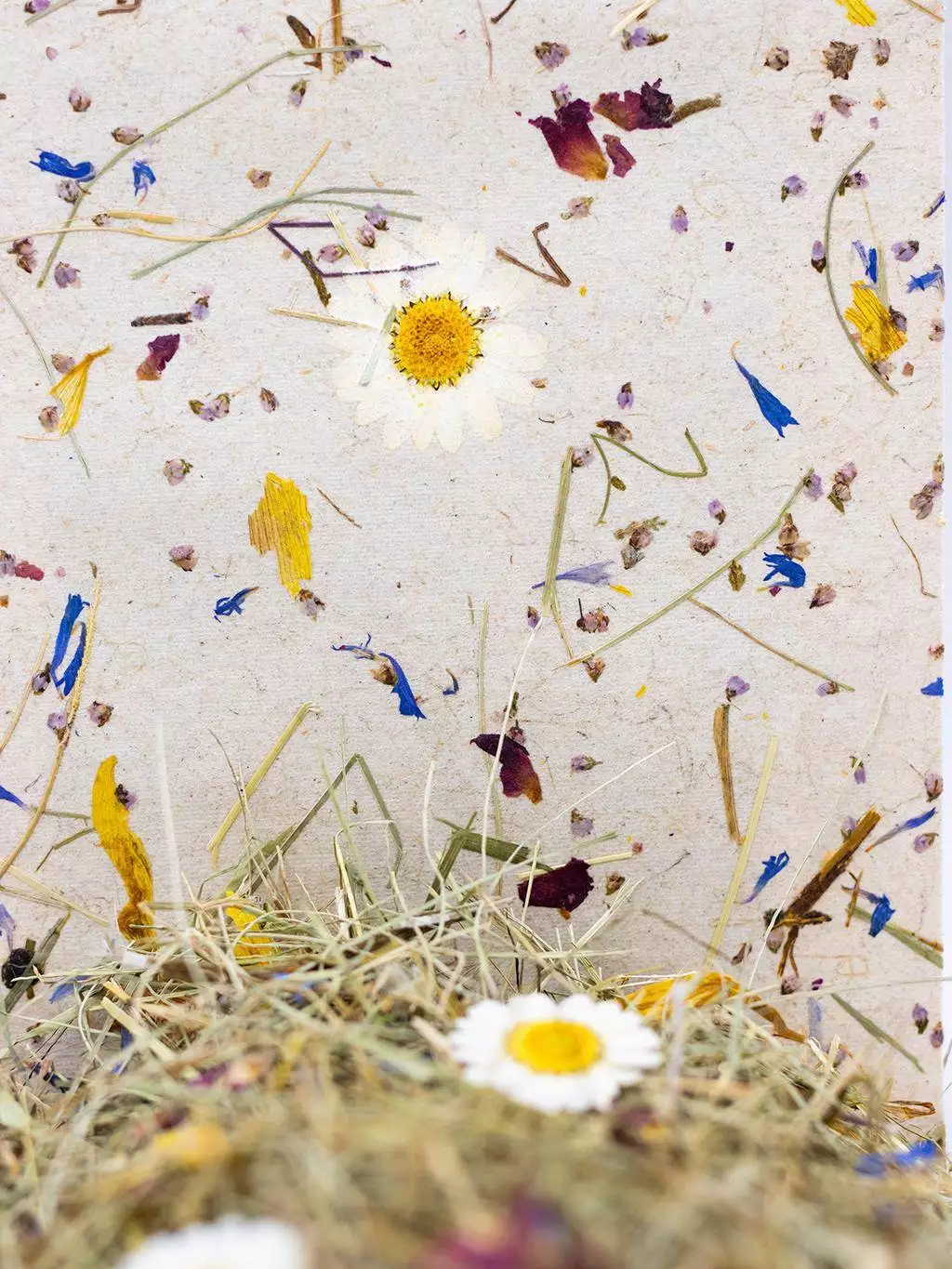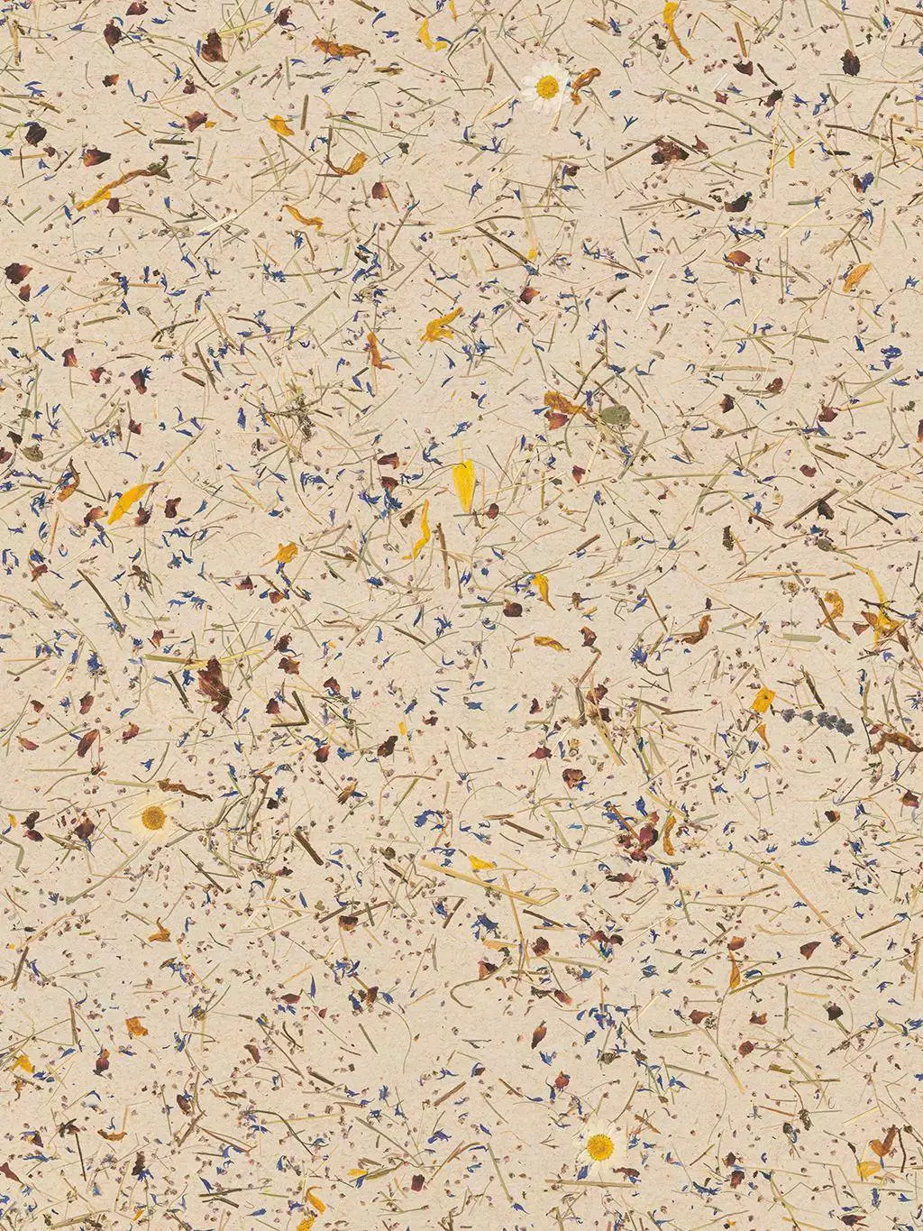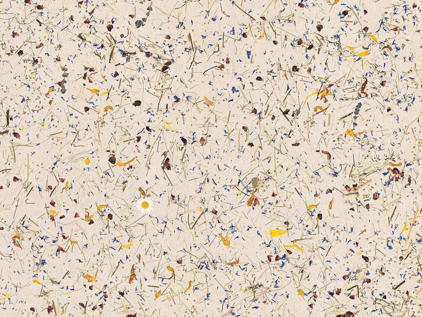Natürlich, schlicht und reizvoll anders vereint die Tapete Almwiese Light auf dem Trägermaterial Flachsvlies handgeschnittenes Alpwiesenheu mit getrockneten Blüten – darunter Margeriten, Kornblumen und Rosen – in leichter Auflage. Die Oberfläche wirkt luftig und texturiert, etwas durchscheinender als bei der verwandten tapete Almwiese. Ideal für Naturfans und Designliebhaber. Das Flachsvlies ist atmungsaktiv, ungebleicht und OEKO-TEX-zertifiziert. Perfekt für Wohnräume, die Wärme, Haptik und nachhaltiges Flair suchen.