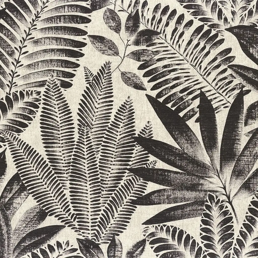 Die Tapete Aloes wirkt kraftvoll in ihrem Schwarz-Weiß-Muster, gediegen in den Grüntönen oder in schlichter und zurückhaltender Weise in feinen Creme-Tönen. Die Vinyl-Oberfläche besticht mit dem Eindruck gewebten Materials, was die Tapete besonders edel macht. Robuste Möbel aus Holz, klare Formen in der Dekoration und moderne Couchlandschaften gehen mit den Blätterwelten an der Wand eine perfekte Harmonie ein.
