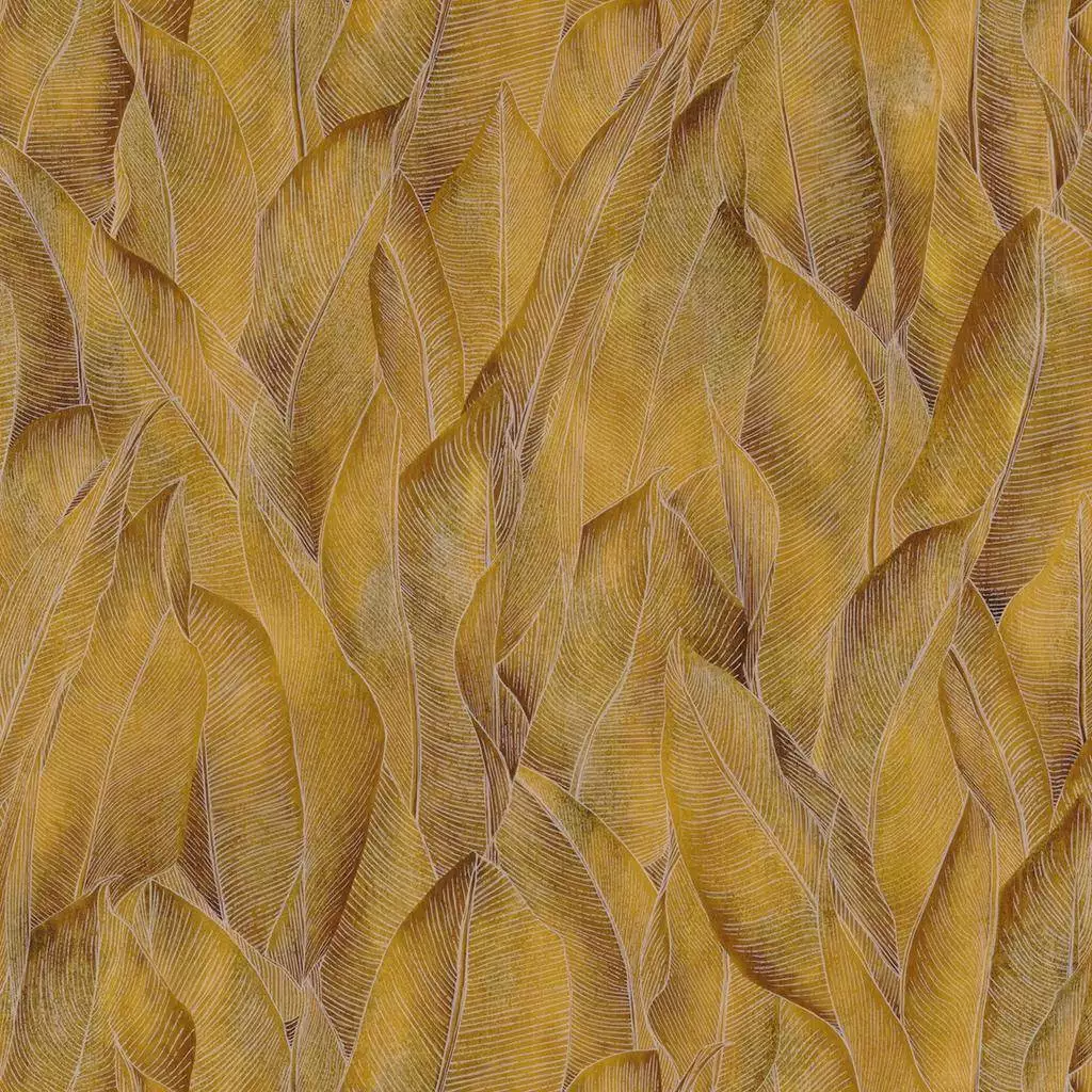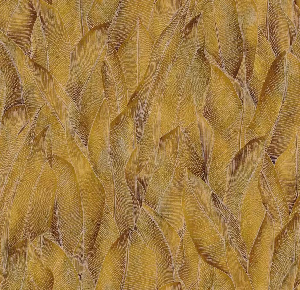 Bei der Tapete Amazone zeigt sich der Botanik Trend von seiner luxuriösen Seite. Große, detailgenau gezeichnete Blätter sind auf dieser wunderschönen Vinyl Tapete ineinander verwoben und bilden einen außergewöhnlichen Wandschmuck, der die Blicke auf sich zieht. Die leicht strukturierte Oberfläche und der Goldton geben der Tapete im Botanik Trend einen glamourösen Touch und verströmen eine exklusive Atmosphäre. Zugleich sorgt die sanfte Dynamik des Blattmotivs für eine ausgleichende, entspannende Raumwirkung. Glamour gepaart mit Natürlichkeit sind ein unschlagbares Team!