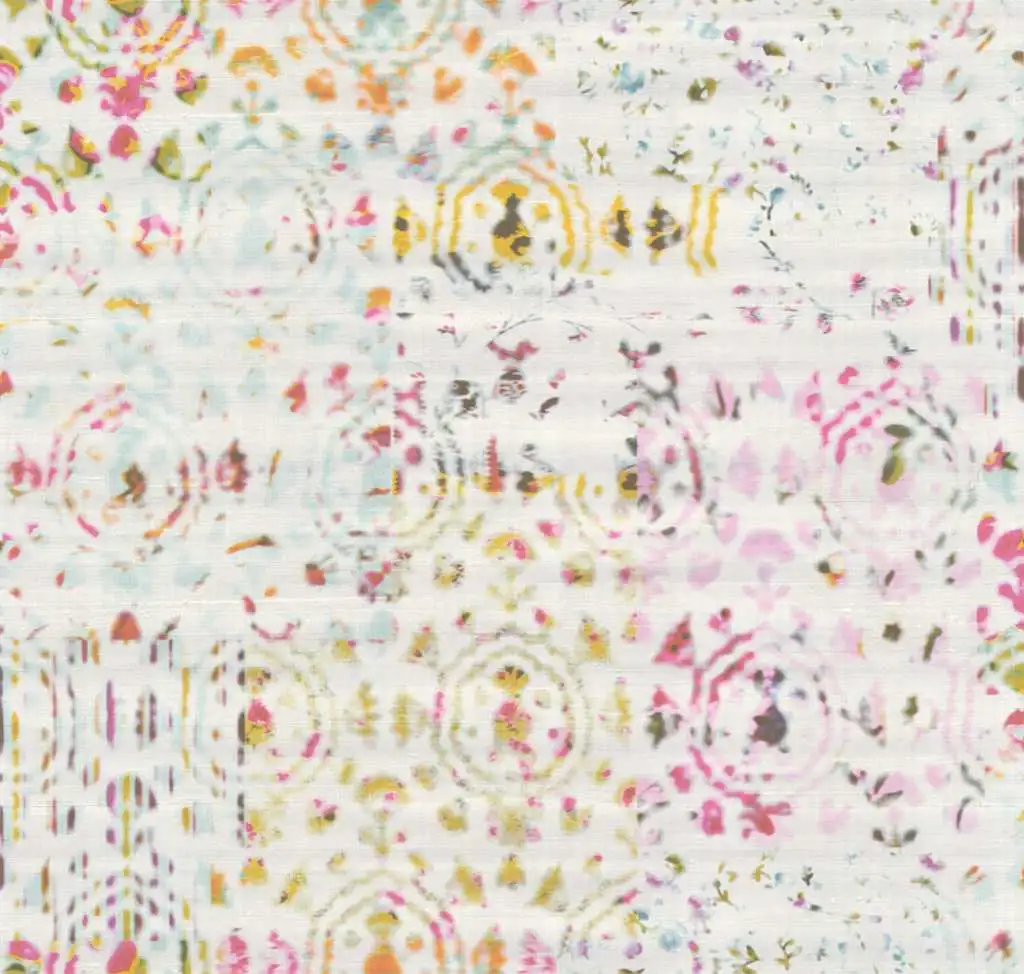 Die Tapete Aminta besticht aber auch durch ihre besondere Optik. Die bunten Blumen sind nur angedeutet, wie feine Schemen blitzen sie ab und an hervor. Die Vinyltapete wirkt mit ihrer Struktur und den feinen changierenden Tönen wie Stoff. Sie wirkt dadurch edel und warm.