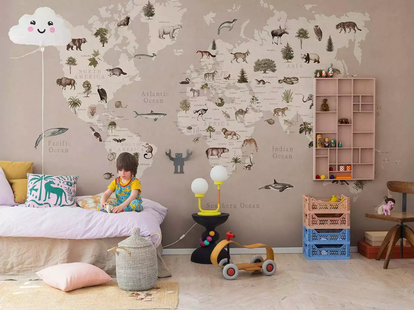 Entdecken Sie die zauberhafte Welt der Tiere mit unserer „Animal World“-Tapete in Rosa, die speziell für Kinderzimmer entworfen wurde. Diese wunderschöne Tapete zeigt eine detaillierte Weltkarte mit liebevoll illustrierten Tieren und Pflanzen aus verschiedenen Kontinenten. Sie fördert die Entdeckerfreude Ihrer Kinder und verwandelt jedes Zimmer in ein Abenteuerland. Die sanften Rosatöne schaffen eine beruhigende und dennoch inspirierende Atmosphäre. Besonders begeistert sind wir von der Balance zwischen den lehrreichen Elementen und dem beruhigenden Design.