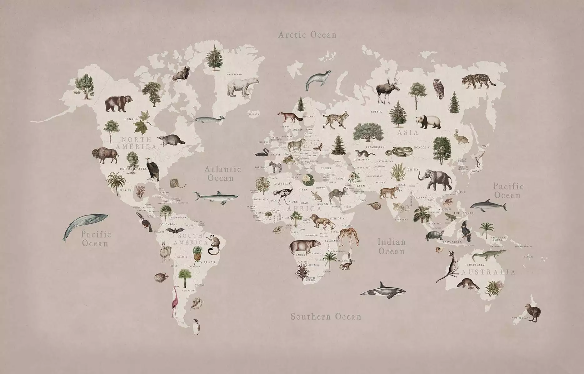 | Design: | FotoTapeten, KinderTapeten, Landkarte, Tiere |