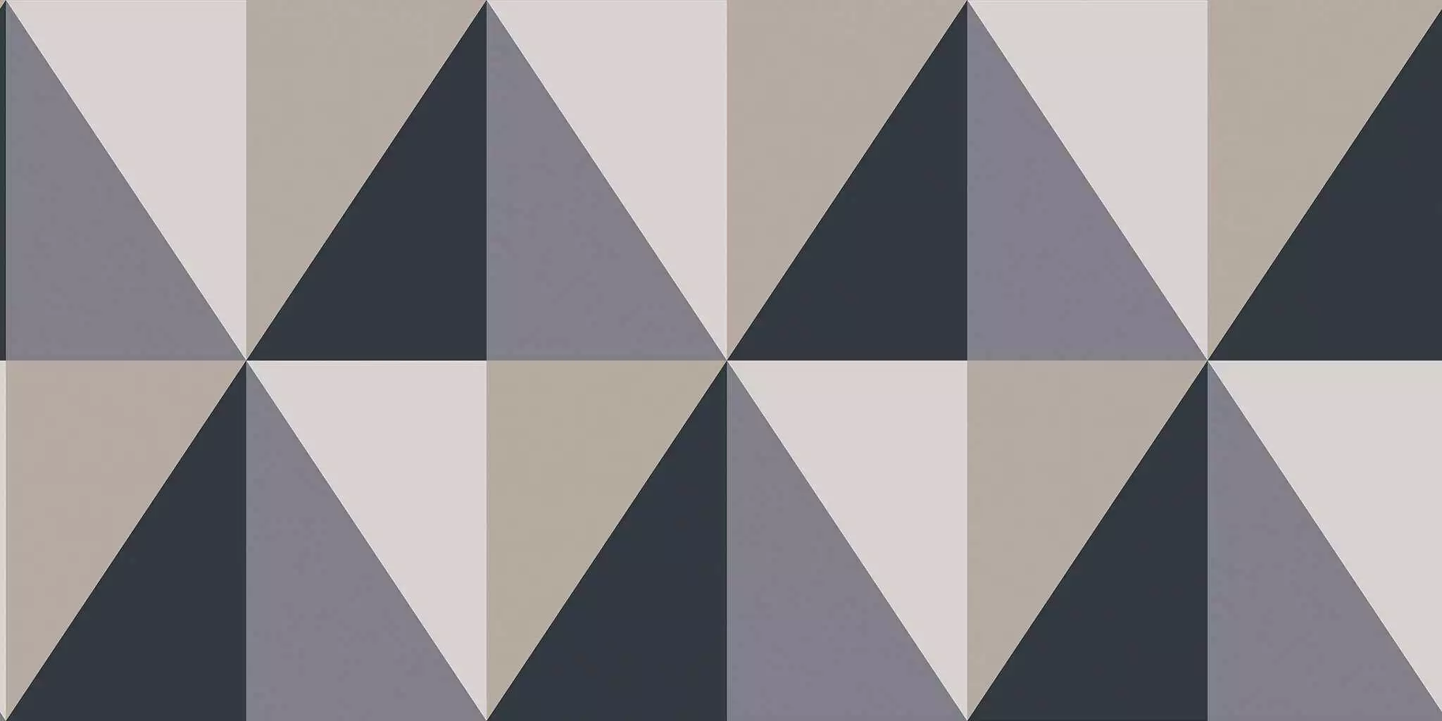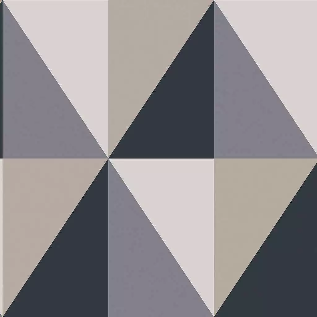 Die Apex Grand Tapete präsentiert ein modernes Design mit ineinandergreifenden Dreiecken. Das Muster aus Dreiecken, welche je nach Blickwinkel Rauten oder Rechtecke formen, verleiht dynamische Note. Diese Variante ist in den Farben Grey, Charcoal & Metallic Gilver gehalten.