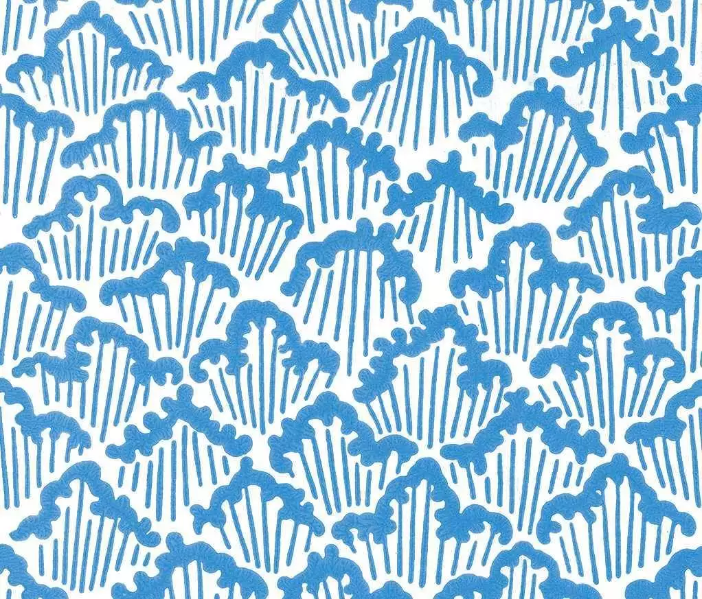 Die Tapete Aranami basiert auf der japanischen Papierschneidekunst kiri-e. Das Wellenmotiv ist klar und grafisch angelegt, wirkt aber zugleich weich und bewegt. Die blaue Farbkombination betont den maritimen Charakter und ruft das regelmäßige Auf und Ab der Meereswellen in Erinnerung. Grundfarbe: Pavilion Blue 252