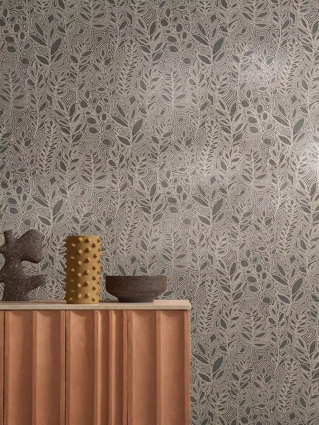 Die Tapete Astragale Anthracite ist inspiriert vom Astragalus, auch Milchkraut genannt, das auf den Barlearen als Wildgewächs zu finden ist. Seine gefiederten Blätter sind Inspiration für die geprägten Pflanzensilhouetten, die auf die Tapete gestickt zu sein scheinen. Sie repräsentieren das Kunsthandwerk der Inseln und die Stickereien im mallorquinischen Stich. Der anmutige Astragalus erwacht in Creme auf dunklem Leinengrund zum Leben und bildet eine strukturierte, natürliche und zeitlose Stickerei.