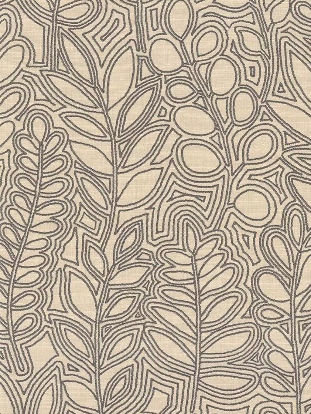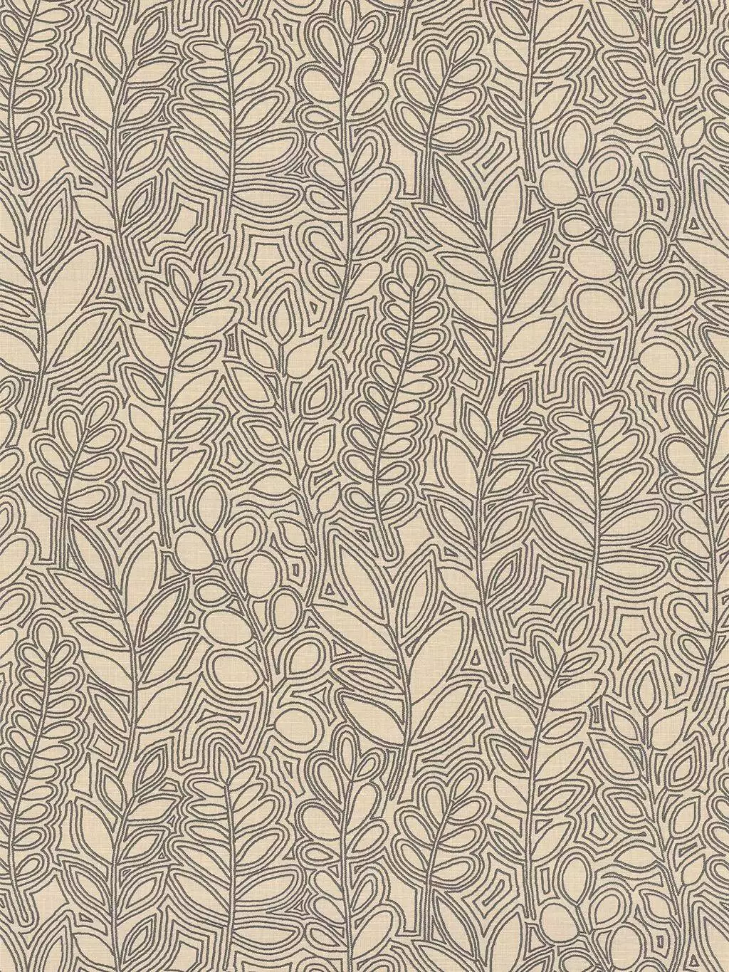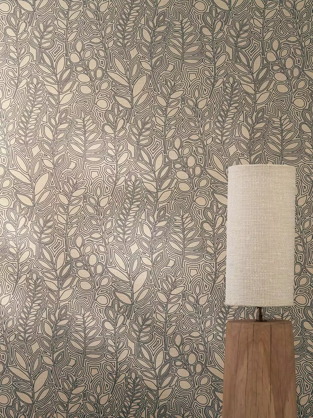 Die Tapete Astragale Latte ist inspiriert vom Astragalus, auch Milchkraut genannt, das überall frei auf den Balearen wächst. Gefiederte Blätter in Anthrazit erscheinen wie gestickt auf einem erdigen, leinenartigen Fond. Die Struktur erinnert an mallorquinisches Kunsthandwerk und vermittelt unbelastete Natürlichkeit, Eleganz und zeitlose Ruhe.