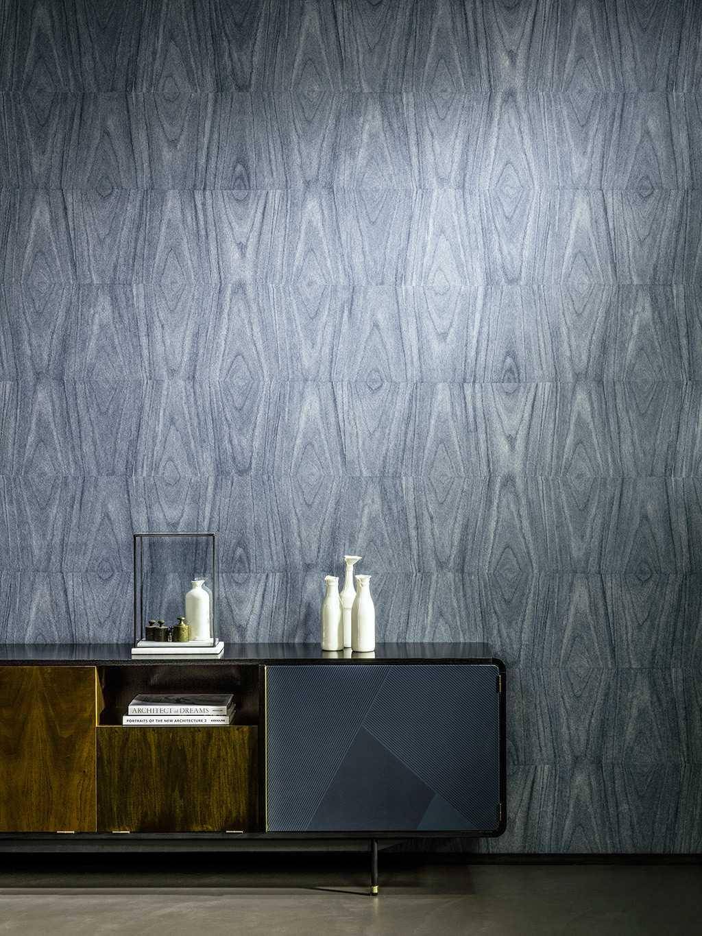 Die Tapete Axedo von ARTE interpretiert Holzmaserung als grafisches Dessin. Zarte Linien erzählen von der Lebensgeschichte der Bäume und verwandeln sich in ein harmonisches Muster. Der weiche Farbton in Silber und Petrol bringt Wärme und Ruhe, geometrische Akzente geben dem Dekor dabei Leichtigkeit. Ideal für Wohn- und Schlafräume, die Natürlichkeit und Eleganz verbinden möchten.