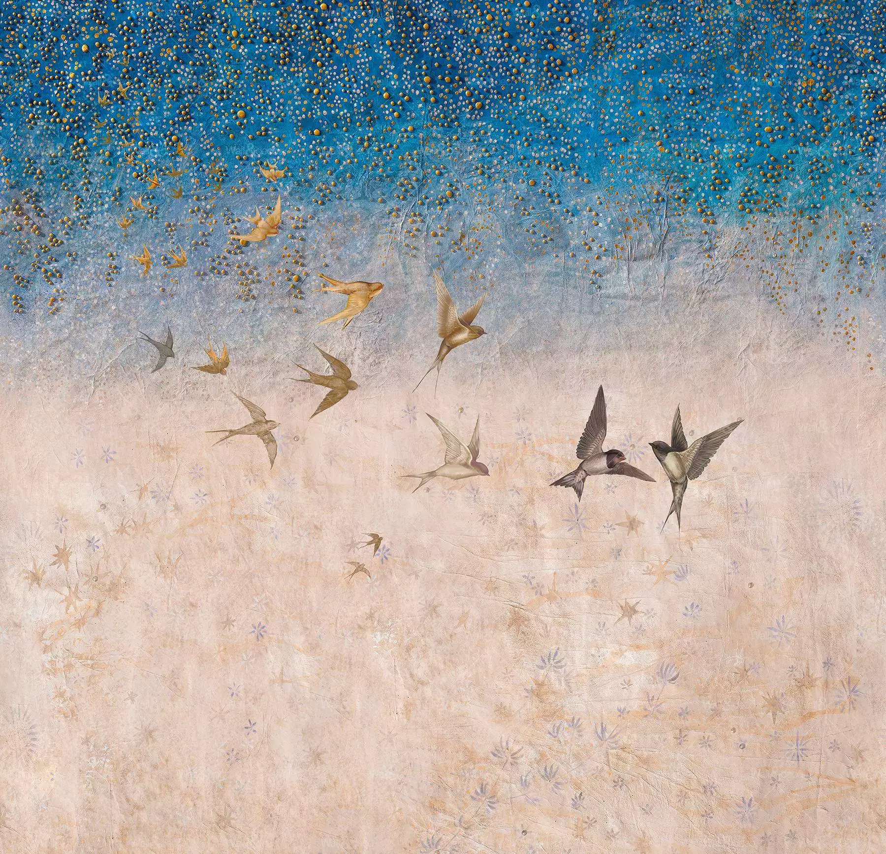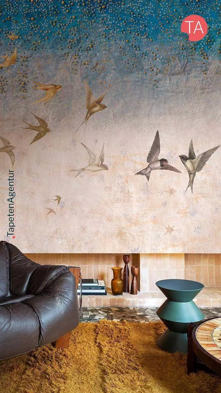 Die Tapete "Back Home" von der Künstlerin und Restauratorin Eva Germani für die neue Kollektion 2024 von wall&deco ist ein wahres Meisterwerk. Mit detailreichen Schwalbenmotiven, die den Sommer ankündigen, und einem zauberhaften Sternenhimmel auf einer Wand mit Patina, verleiht sie jedem Raum eine magische Atmosphäre. Diese exklusive Tapete ist nicht nur ein Blickfang, sondern auch von höchster Qualität. Die hochwertigen Materialien sorgen für eine lange Haltbarkeit und machen sie zu einem echten Highlight in jedem Zuhause. Erwecke mit der Tapete "Back Home" deine Wände zum Leben und tauche ein in eine Welt voller Wärme und Geborgenheit. Lass dich von dem Charme dieser einzigartigen Kreation verzaubern und schaffe einen Ort, an dem du dich rundum wohlfühlen kannst.