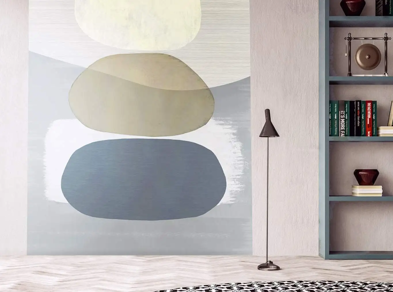 • Großformatige Muster, warme Farben und dezente Metallic-Effekte, die Tiefe und Eleganz schaffen