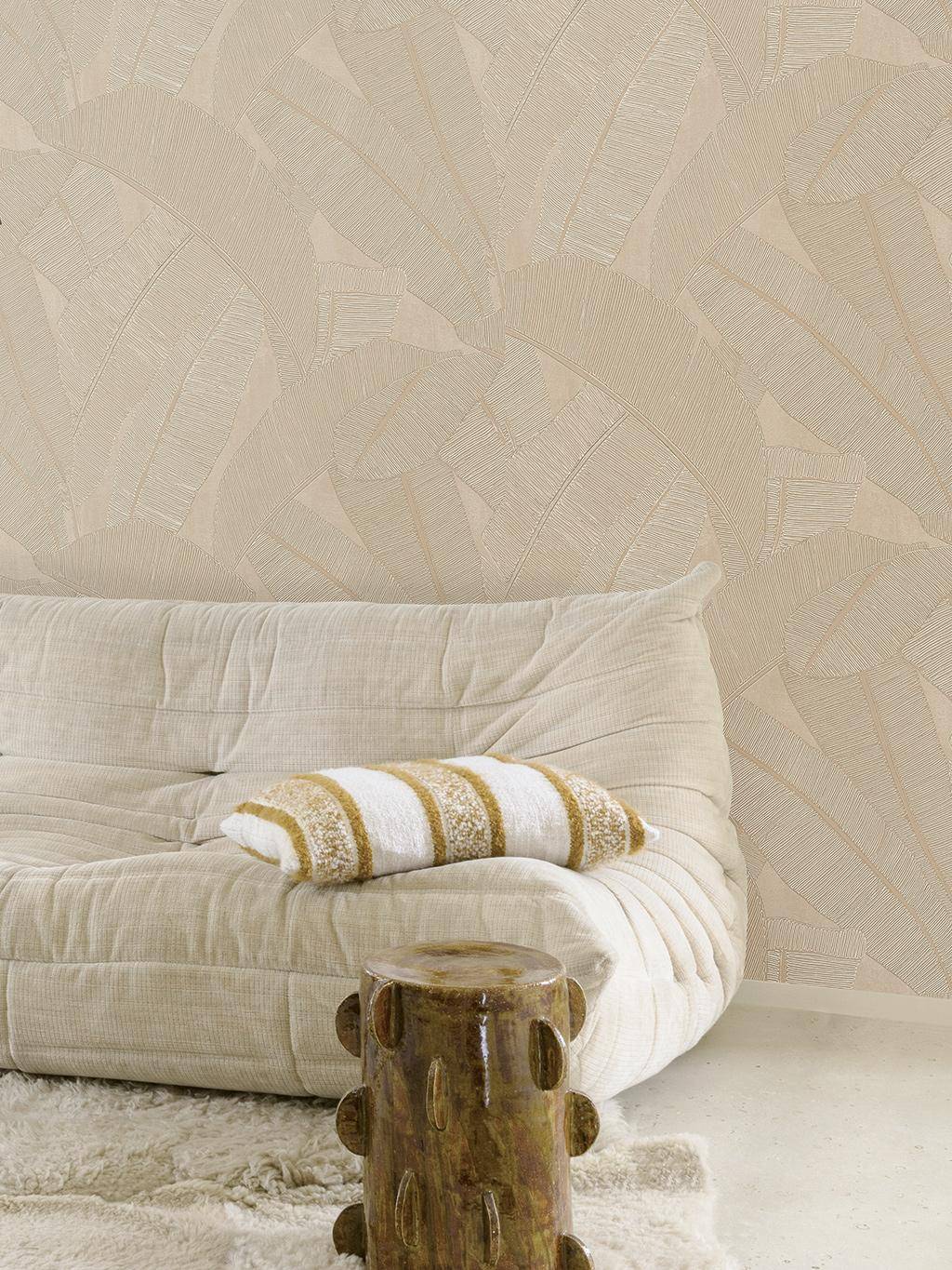 Die Tapete Banyan Ivory ist eine Hommage an die Magie der unberührten, wilden Natur Indiens und ihren ikonisches Lebensbaum. Das üppige Blattwerk des Banyans wird lebendig, indem Seile kunstvoll zu Blattmustern gelegt werden. Dadurch entstehen Zeichnungen mit spürbarem Relief, die der Tapete ein textiles Gesicht geben. Wie das ausladende Blätterdach des Lebensbaums kreiert auch die Tapete Banyan ein Gefühl von Schutz, Geborgenheit und sanfter Erdung. Erleben Sie, wie Banyan eine ruhige, organische Kraft in den Raum bringt, gepaart mit luxuriöser Materialität.