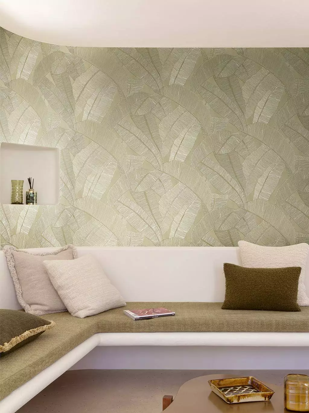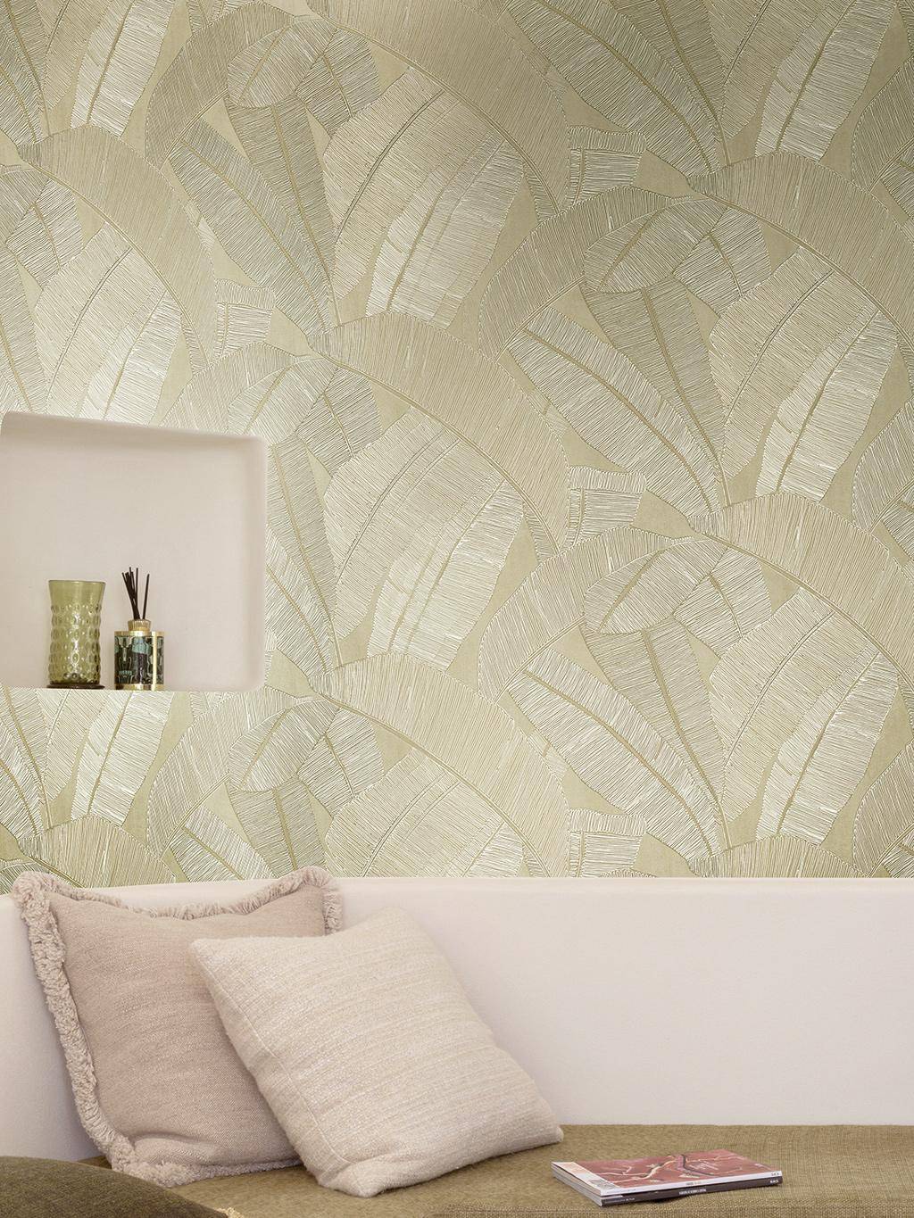 Die beige Tapete Banyan Elm lässt üppiges tropisches Blattwerk auf ruhigem Fond lebendig werden. Ihre reliefartige Prägung jedes einzelnen Blattes fängt das Licht mit seidigem Schimmer ein, fast wie feiner Brokat, der den Raum in Szene setzt. Das Motiv trägt die Magie unberührter Natur in sich, inspiriert von der wilden Schönheit Indiens. Ihr Name verweist auf den Banyan-Baum, der in Indien verehrte, ikonische Lebensbaum. Wie sein ausladendes Blätterdach schafft auch diese Tapete ein Gefühl von Schutz, Geborgenheit und sanfter Erdung. Die Haptik ist außergewöhnlich: spürbar strukturiert, wertig, mit einer Tiefe, die man sehen und fühlen kann. Banyan bringt eine ruhige, organische Kraft in den Raum, zusammen mit luxuriöser Materialität.
