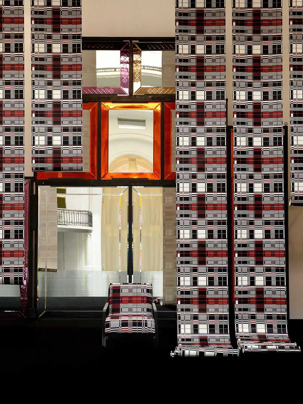 Mit müheloser Schlichtheit verleiht das grafische Design aus Karos und Streifen der Tapete Basque einen traditionellen Touch.