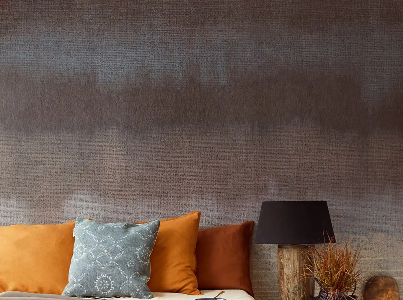 • Großformatige Muster, warme Farben und dezente Metallic-Effekte, die Tiefe und Eleganz schaffen