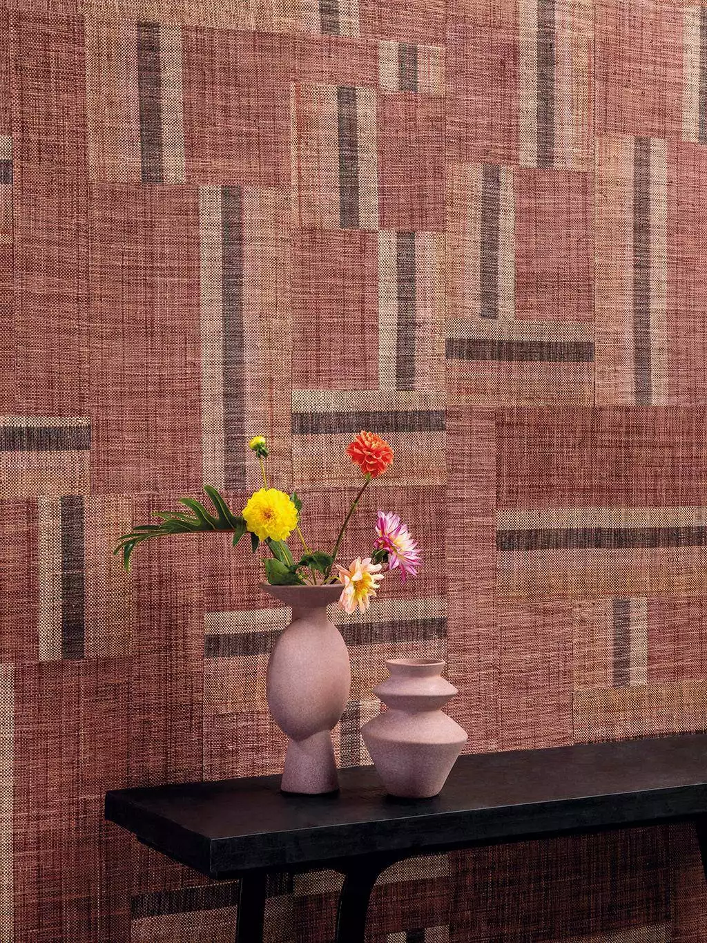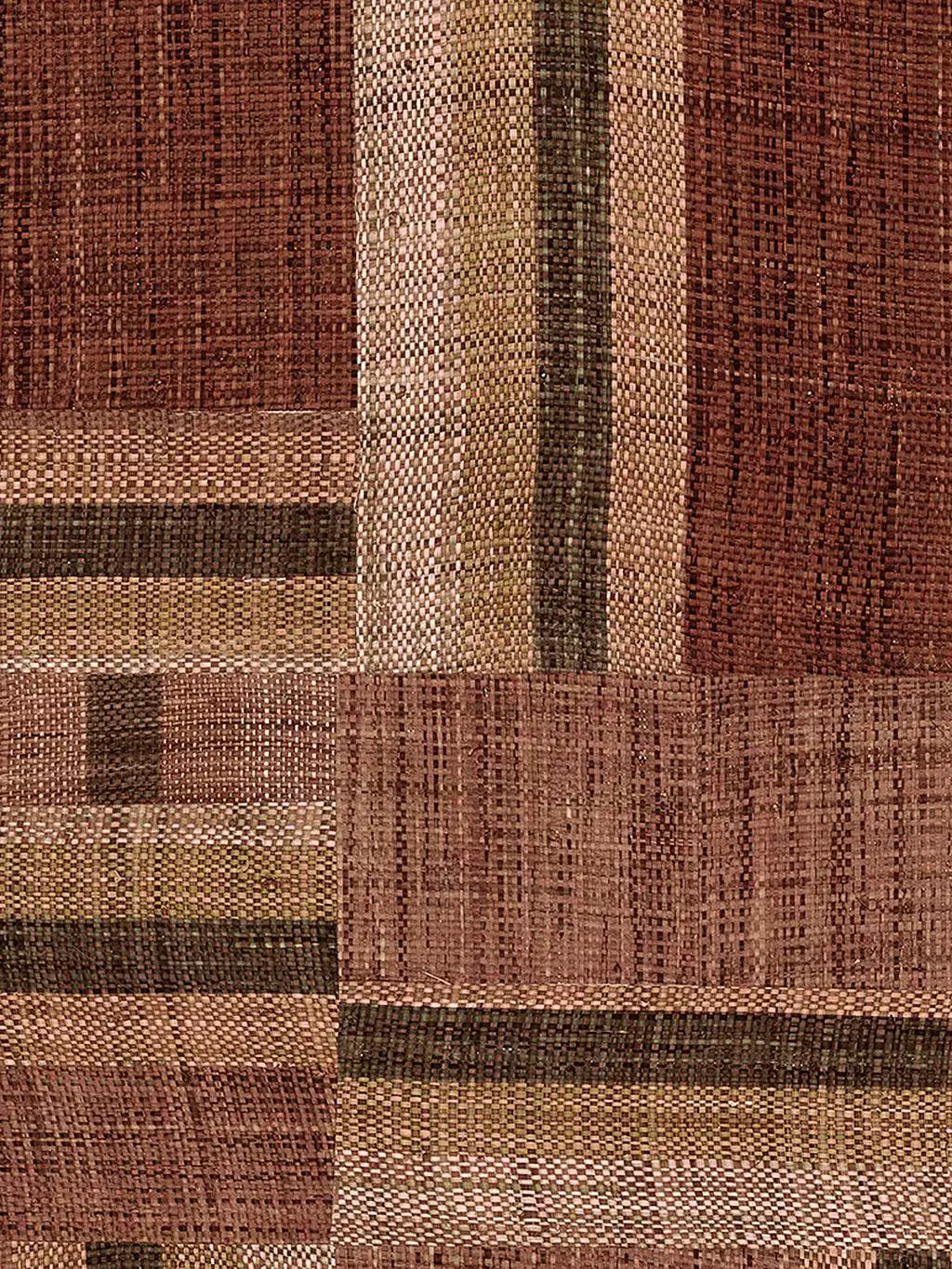 Boro, col. 72 vereint die Wärme von erdigen Rottönen mit handwerklicher Raffinesse. Das kunstvoll gewebte Raffia-Material wird in einer harmonischen Komposition aus sattem Terrakotta, tiefem Burgunder und zarten Sandtönen neu zusammengesetzt. Durch die feine Collage-Technik entstehen spannende Texturen, die dem Design eine unverwechselbare Tiefe verleihen. Die Farbgebung erinnert an sonnengetrocknete Lehmziegel und traditionelle japanische Färbetechniken – ideal für ein Ambiente, das Geborgenheit, Eleganz und natürliche Authentizität ausstrahlt.