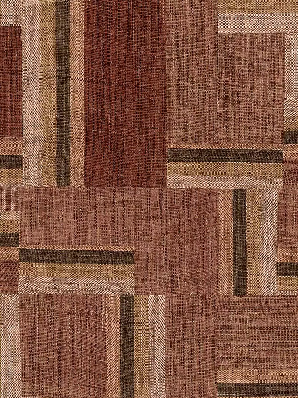 Boro, col. 72 vereint die Wärme von erdigen Rottönen mit handwerklicher Raffinesse. Das kunstvoll gewebte Raffia-Material wird in einer harmonischen Komposition aus sattem Terrakotta, tiefem Burgunder und zarten Sandtönen neu zusammengesetzt. Durch die feine Collage-Technik entstehen spannende Texturen, die dem Design eine unverwechselbare Tiefe verleihen. Die Farbgebung erinnert an sonnengetrocknete Lehmziegel und traditionelle japanische Färbetechniken – ideal für ein Ambiente, das Geborgenheit, Eleganz und natürliche Authentizität ausstrahlt.