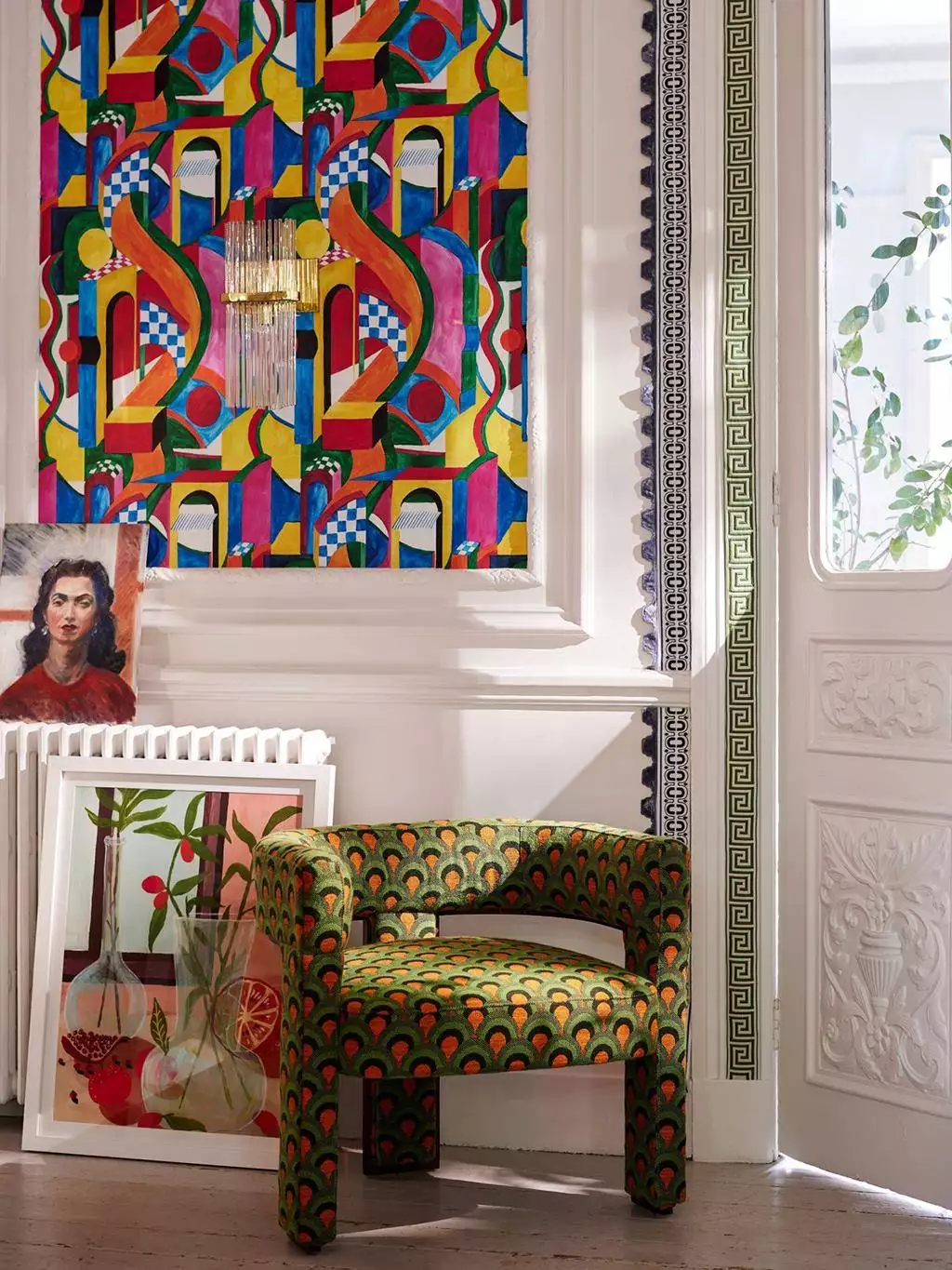 Die Tapete „Bossa Nova“ ist ein wahres Fest für die Sinne. Sie vereint geometrische Muster mit kräftigen, leuchtenden Farben und schafft so eine dynamische und lebendige Atmosphäre. Die Muster wirken wie eine Hommage an die farbenfrohe und rhythmische Musik Brasiliens, die Bossa Nova, und bringen ein Gefühl von Fröhlichkeit und Lebensfreude in den Raum. Die Komposition aus abstrakten Formen und Linien sorgt für Bewegung und Energie, ohne dabei überwältigend zu wirken.