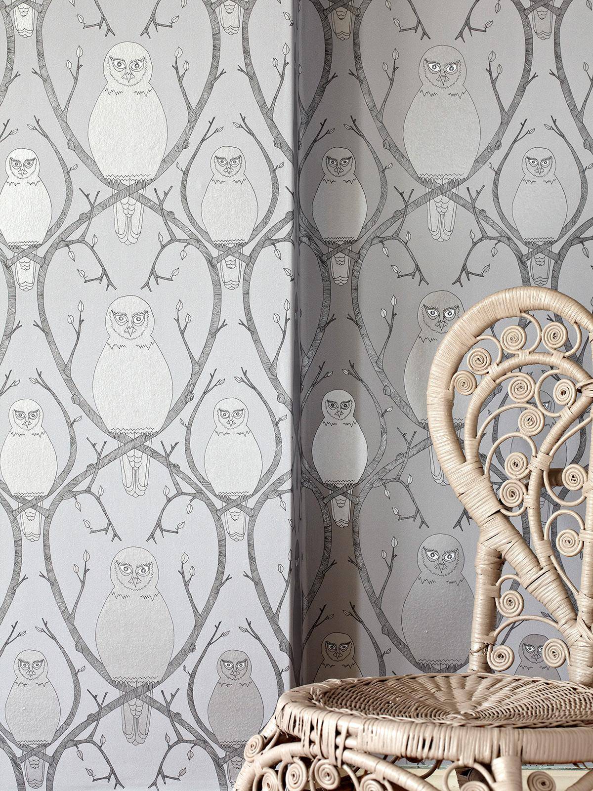 Die Tapete Briar Owl zeigt stilisierte Schneeeulen, die still zwischen feinen, dornenartigen Ästen sitzen. Die Gestaltung ist von der Geschichte von Dornröschen inspiriert: Die Eulen wachen als stille Wächter über die schlafende Prinzessin, verborgen im Dickicht aus Zweigen und Knospen. Die ruhige Farbgebung, ihr Schimmer und die grafische Linienführung verleihen dem Motiv eine märchenhafte, zugleich klare Anmutung. Ein erzählendes Muster mit symbolischer Tiefe.