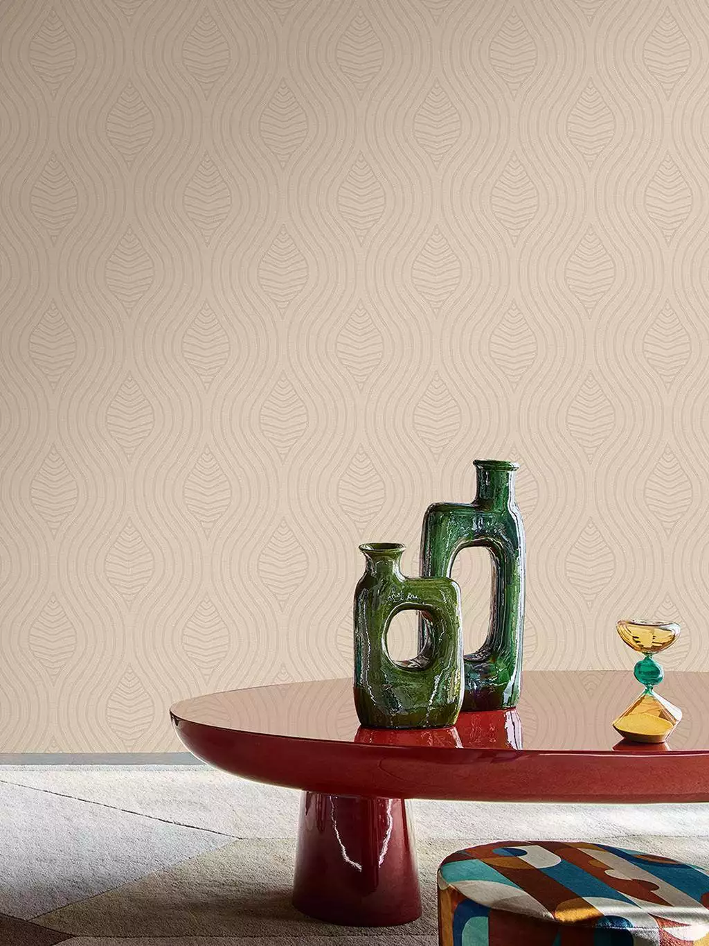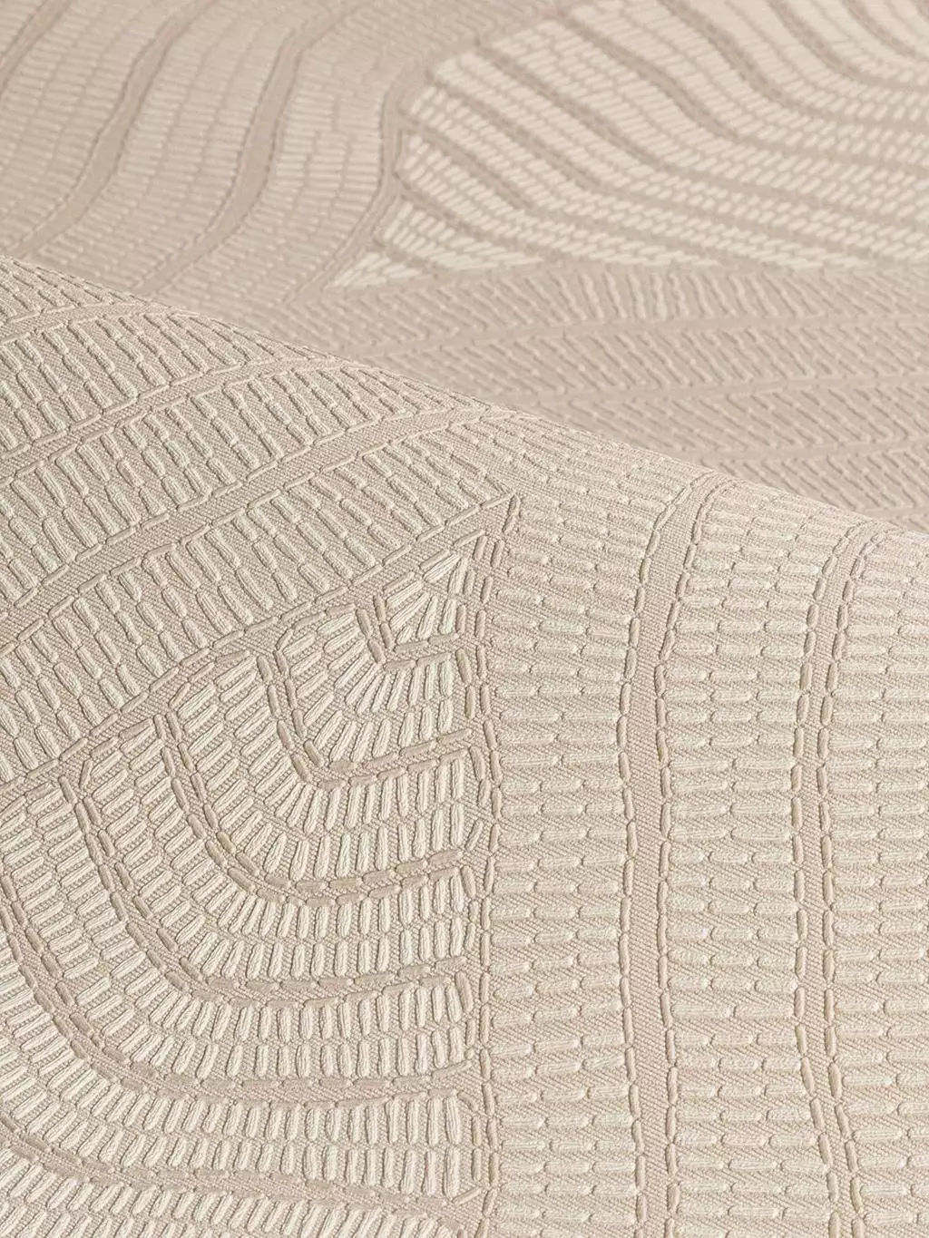 Die Tapete Brodelia Nude übersetzt die Anmutung von Stickerei in eine präzise geprägte Vinyloberfläche. Der Reliefdruck bildet feine, gleichmäßige Strukturen, die das Licht differenziert aufnehmen und dem Muster Tiefe geben. Der klare Rapport führt das organische Motiv ruhig über die Wand. Vinyl auf Papier sorgt für eine robuste, abwaschbare Oberfläche mit matter Wirkung. Emissionsarm und brandschutzgeprüft, geeignet für langlebige, anspruchsvolle Raumkonzepte.