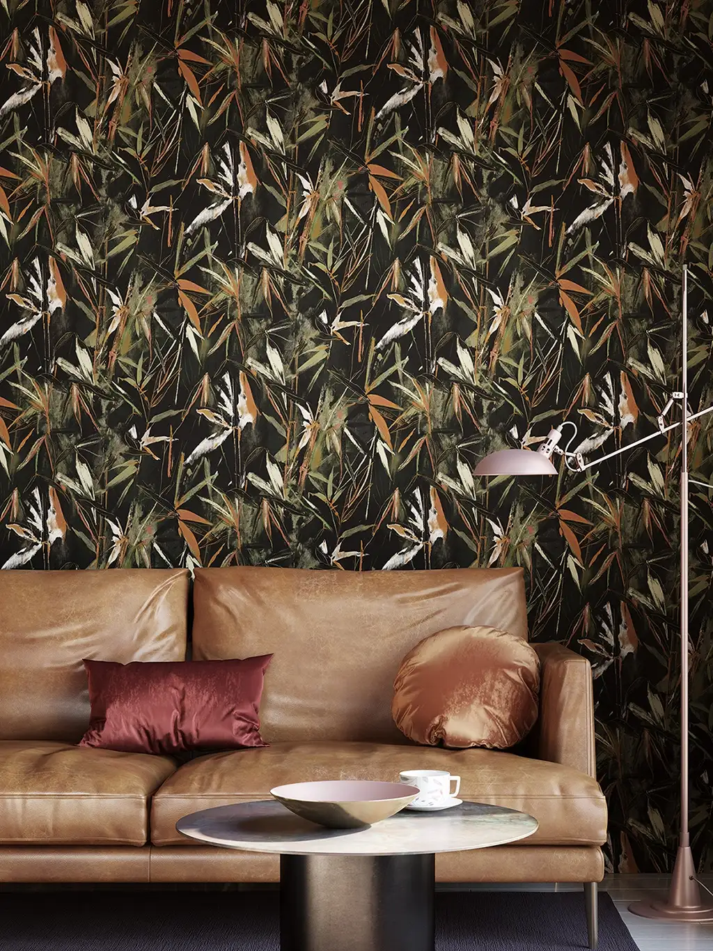 Die florale Tapete mit den starken Kontrasten und der harmonischen Farbgebung wirkt so unglaublich lebendig und inspirierend – ein echtes Musthave für stilsichere Individualisten.