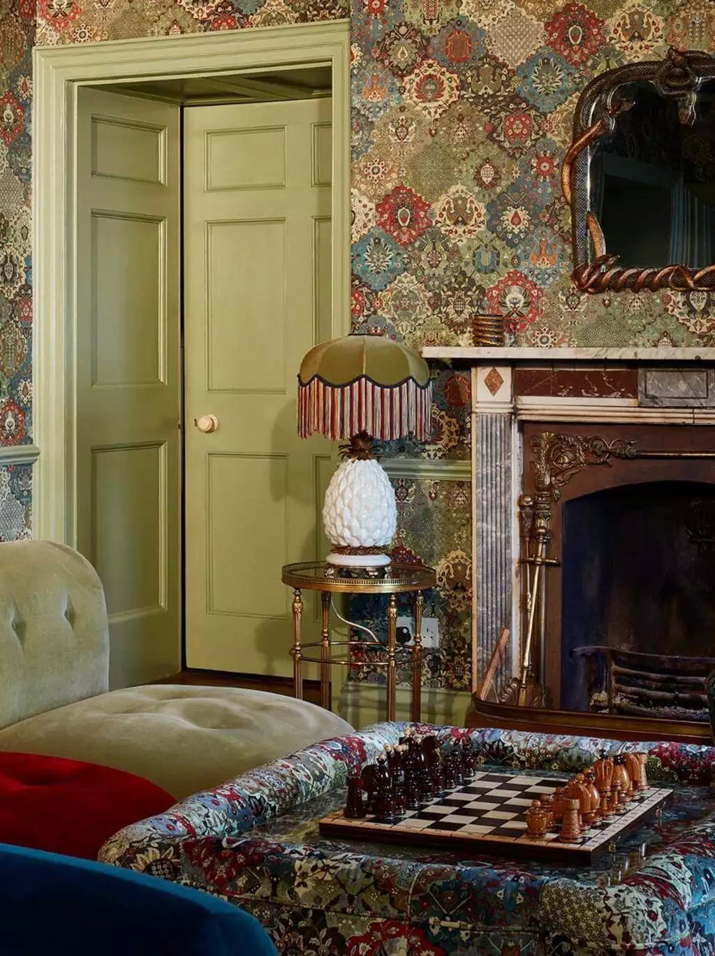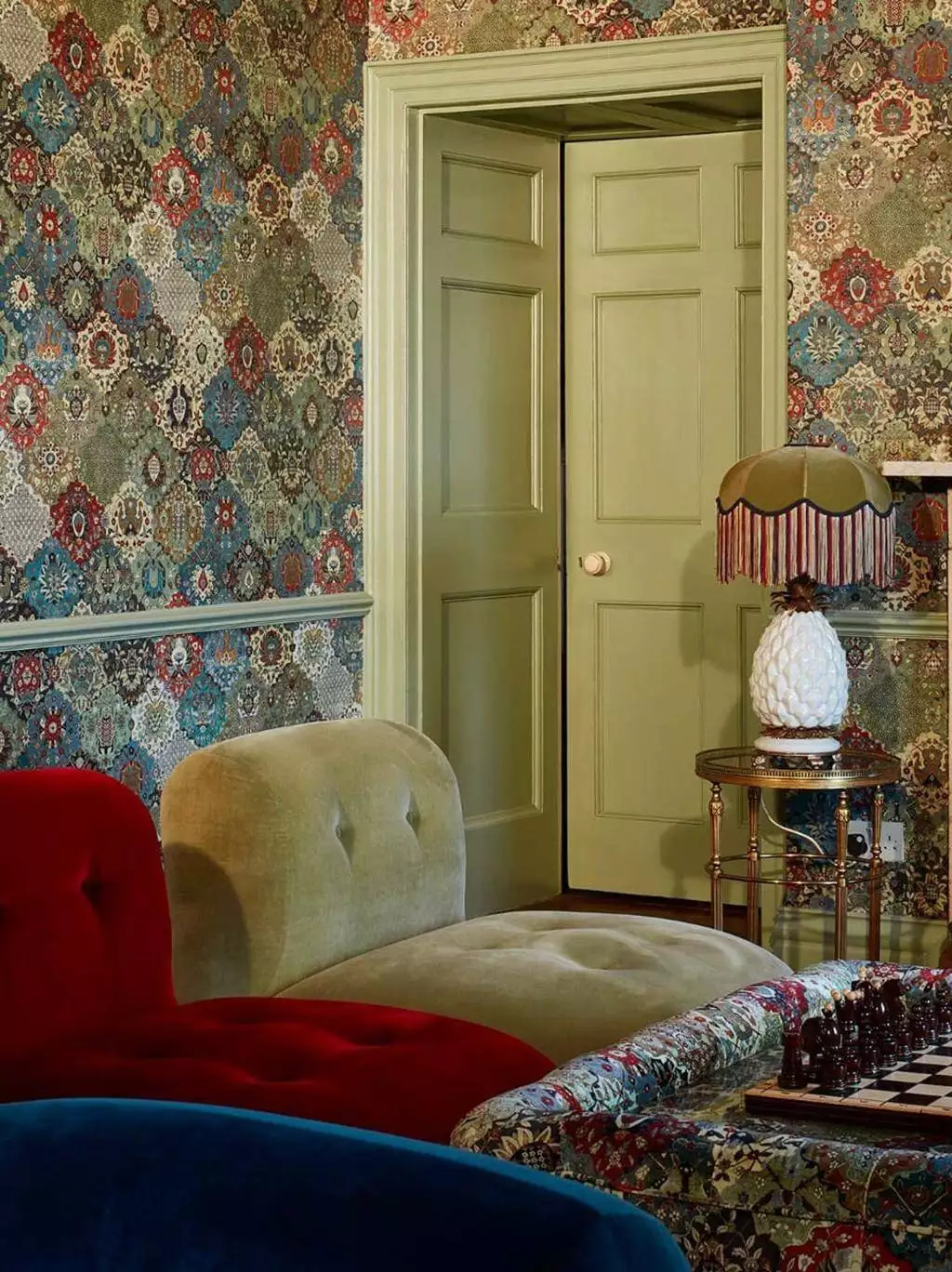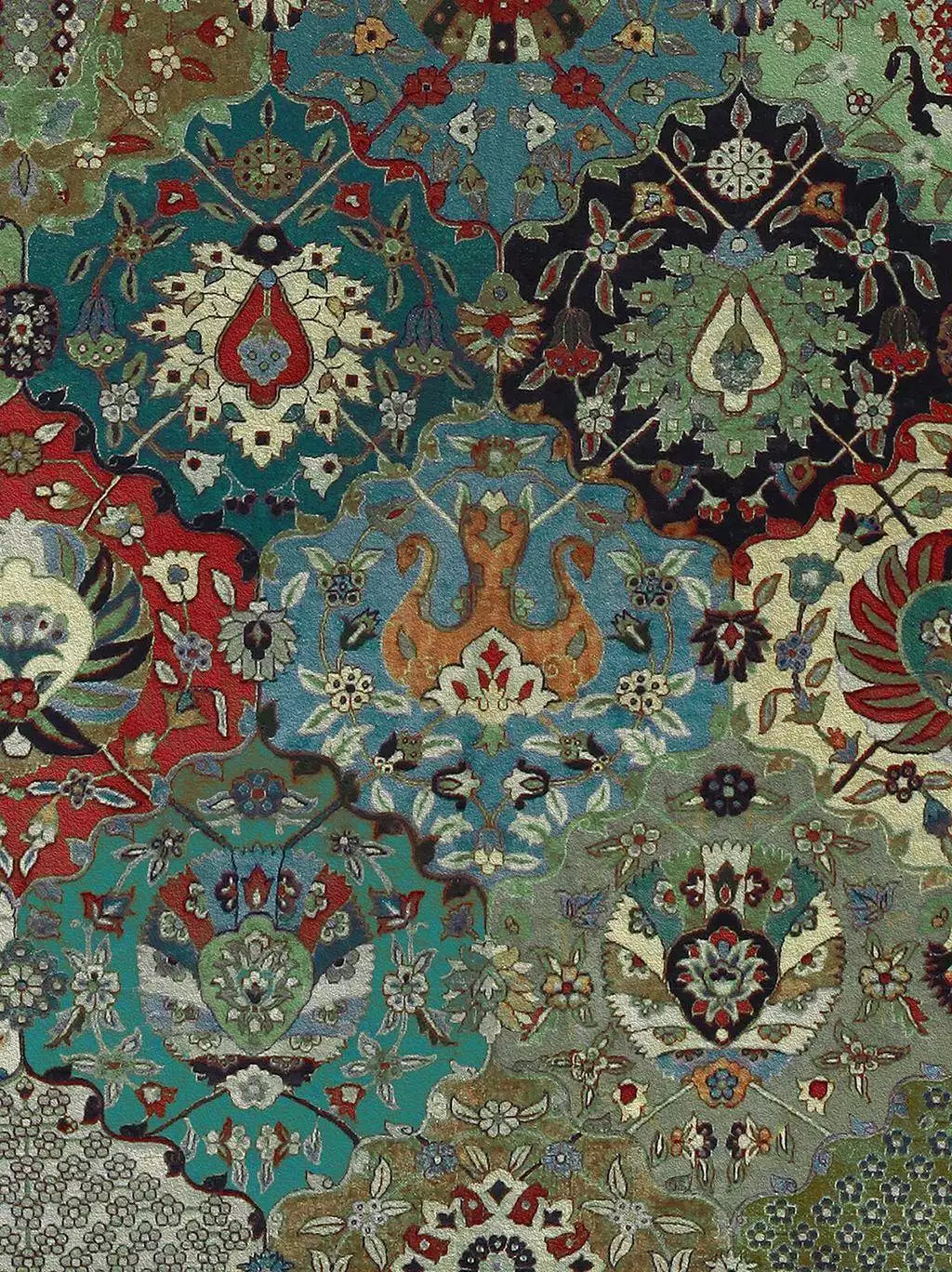 Diese faszinierende Ornament-Tapete von House of Hackney vereint die Eleganz traditioneller Muster mit der Energie moderner Designs. Die farbenfrohe Anordnung von Ornamenten in Rot-, Blau- und Grüntönen erinnert an kunstvolle Mosaike oder orientalische Teppiche und schafft einen Hauch von Exotik in jedem Raum.