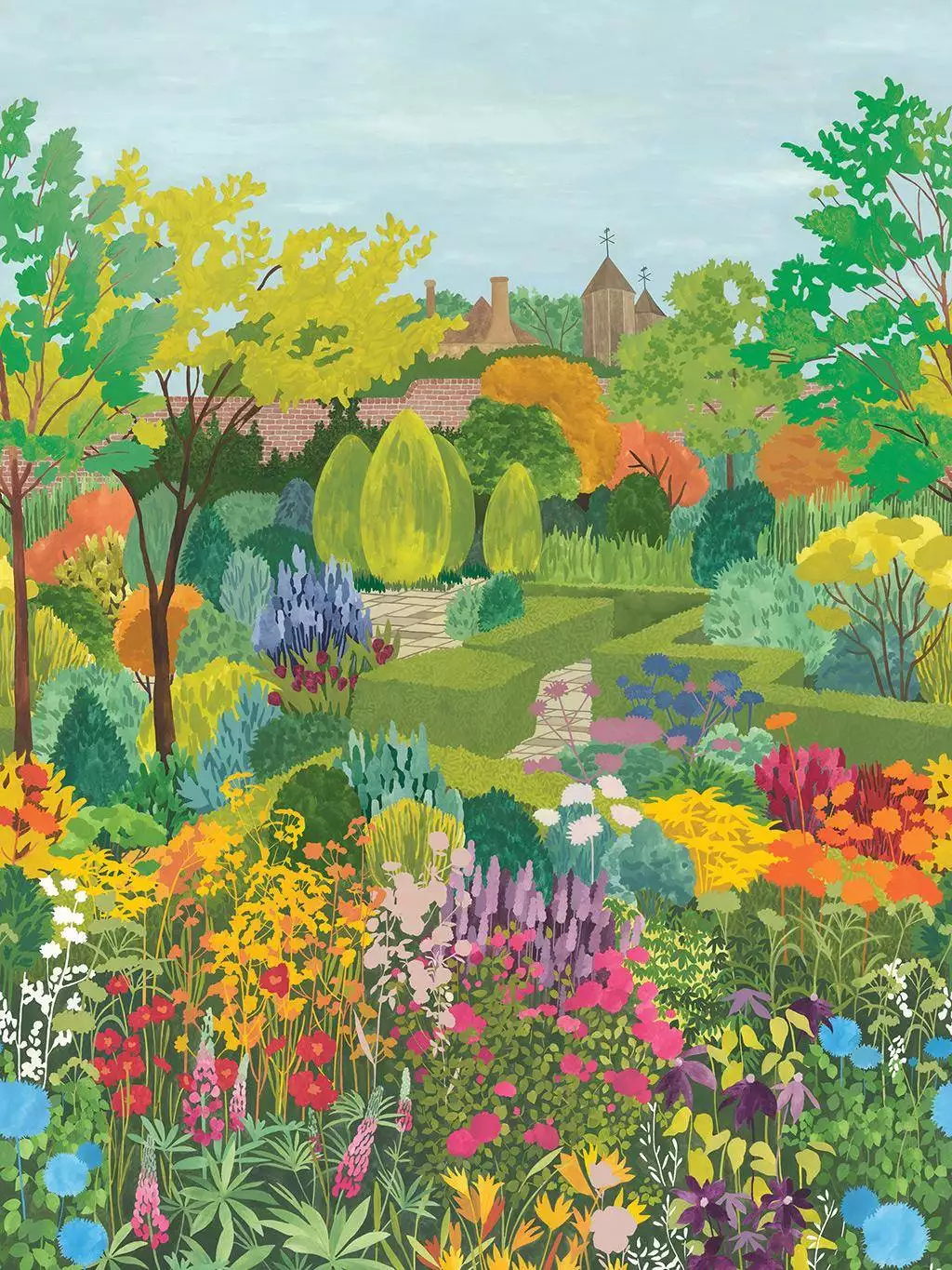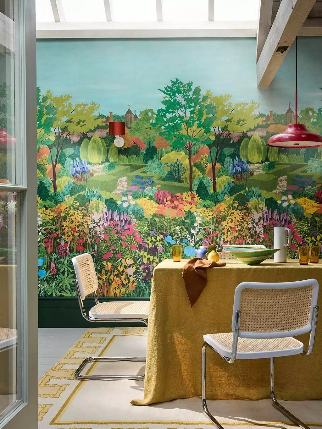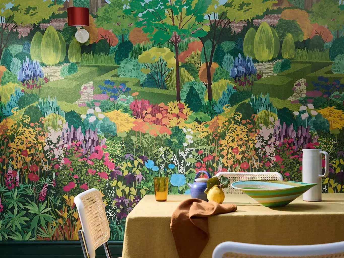 Die Tapete Castle Garden von Little Greene ist eine großmotivige, florale Design-Tapete und eine Hommage an das berühmte Sissinghurst Castle in Kent. Die Dichterin Vita Sackville-West entdeckte das Anwesen 1930 und verwandelte es gemeinsam mit ihrem Mann über drei Jahrzehnte in eine der bekanntesten Gartenanlagen Englands; ohne formale Ausbildung, aber mit einem feinen Gespür für Farben, Kombinationen und Düfte. Castle Garden übersetzt diese Lebendigkeit in ein großzügiges Wandbild: eine Fülle wilder Blumen im Kontrast zu klar gefassten Gartenstrukturen. Eine Tapete, die Räume belebt, sie aber nicht überfordert.