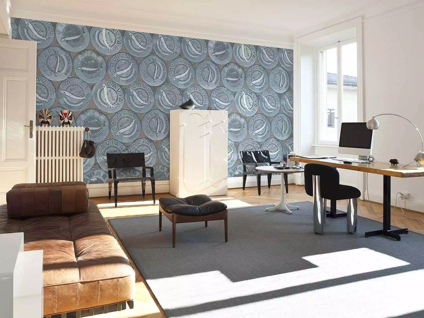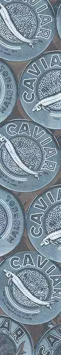 Das Bild der Caviar-Dosen entstand während eines Spazierganges durch New York. Es ist ein Ausschnitt aus einem Schaufenster eines kleinen Delikatessladens in SoHo, Manhatten. Das Motiv wiederholt sich, wie bei einem herkömmlichen Tapetendesign, aber doch ist jede Dose anders. Das Bild wurde analog auf einem SW Film belichtet.