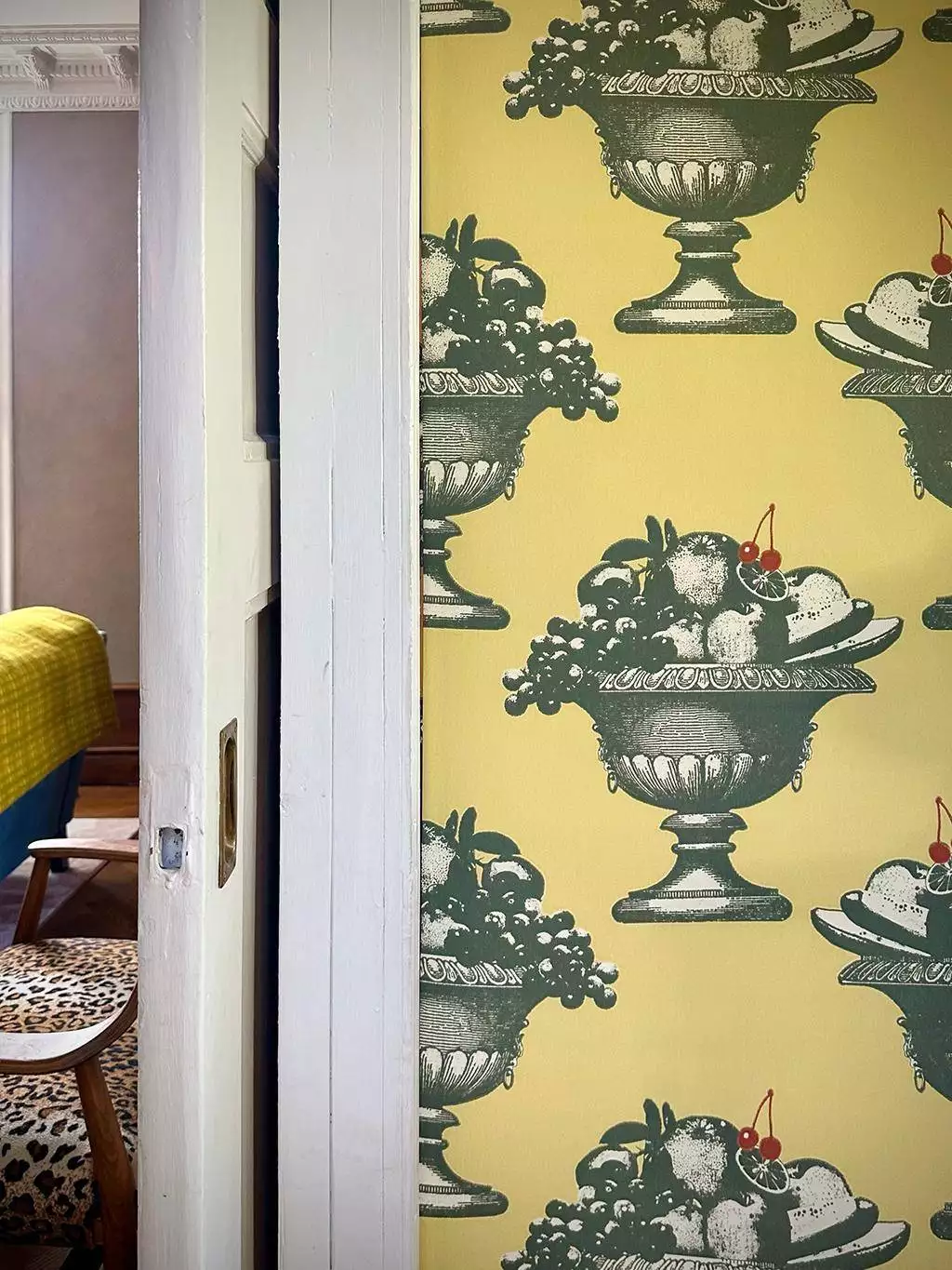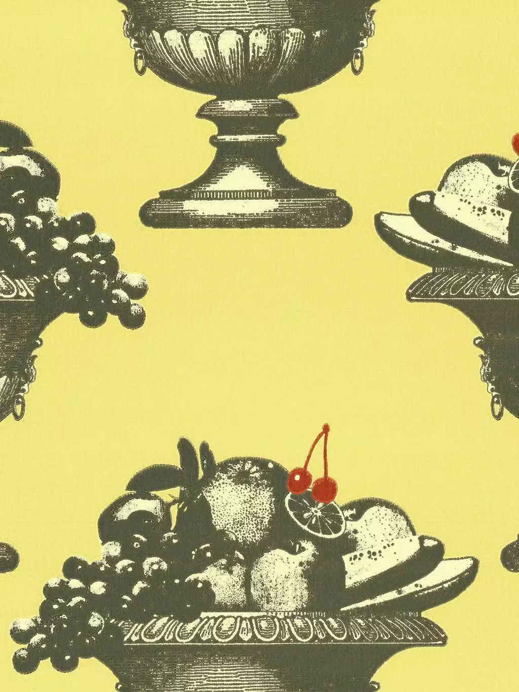 Cherry on Top – der Name ist Programm. Ein Muster, das in jeder Hinsicht etwas Besonderes ist: eine reich gefüllte Vase voller Früchte, gekrönt von einer Kirsche als i-Tüpfelchen. Der sanfte Gelbton der Tapete erinnert an die Frische eines kühlen Sorbets. Das Design ist von den Freuden des Lebens inspiriert. Aus der Kollektion Bits & Pieces.