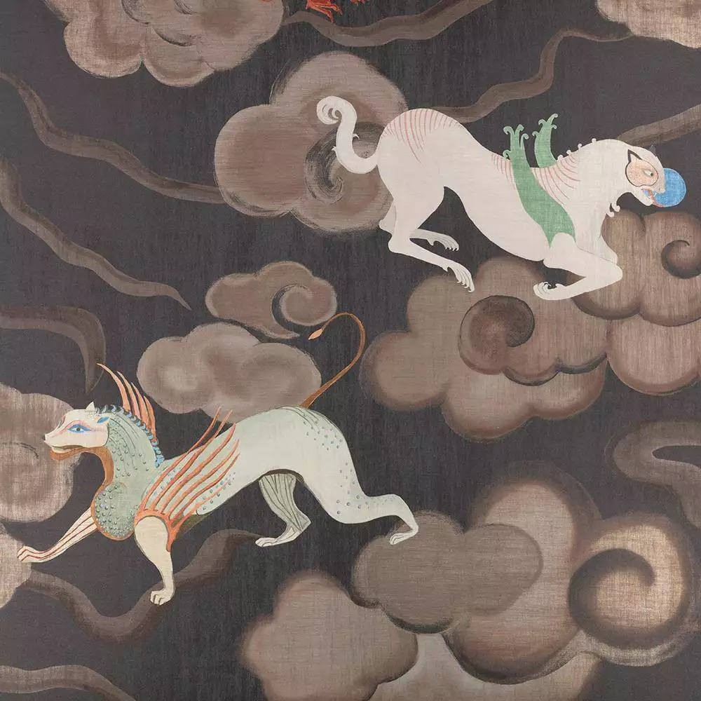 Eindrucksvoll, ruhig, flächig: Die Tapete Chimara ist als Wandmotiv reduziert, nicht geschichten erzählend, sondern auf die Raumwirkung ausgerichtet. Sie zeigt eine Reihe fantastischer, geflügelter Wesen, inspiriert von antiker Mythologie, die mit majestätischer Präsenz über einen luxuriösen, seidenartig schimmernden Grund gleiten. Ätherische Wolken verleihen dem Motiv eine traumhafte Weichheit und Tiefe. In einer bezaubernden Farbpalette aus glänzenden Metallic-Tönen mit kunstvoller Patina entfaltet diese opulente Tapete eine faszinierende, dekadente Ausstrahlung und eignet sich für großzügige, klar gefasste Wandflächen.