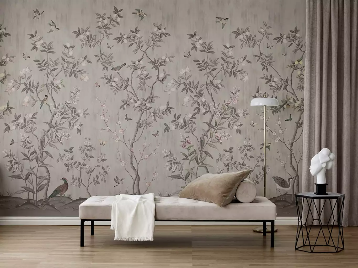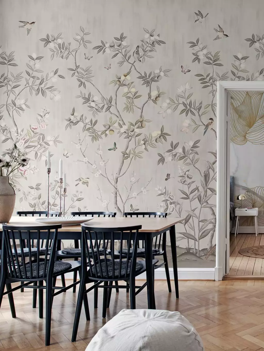 Das Wandbild "Chinoiserie Chic" von Rebel Wall ist ein absolutes Highlight für jeden Raum. Umgeben von Schmetterlingen und Singvögeln, zeigt es Zitrusbäume, exotische Vögel und wirbelnde Schmetterlinge, die eine harmonische Atmosphäre schaffen. Die Kollaboration mit Diane Hill verleiht dem Wandbild eine luxuriöse und dennoch raffinierte Note, die jeden Betrachter in ihren Bann zieht.